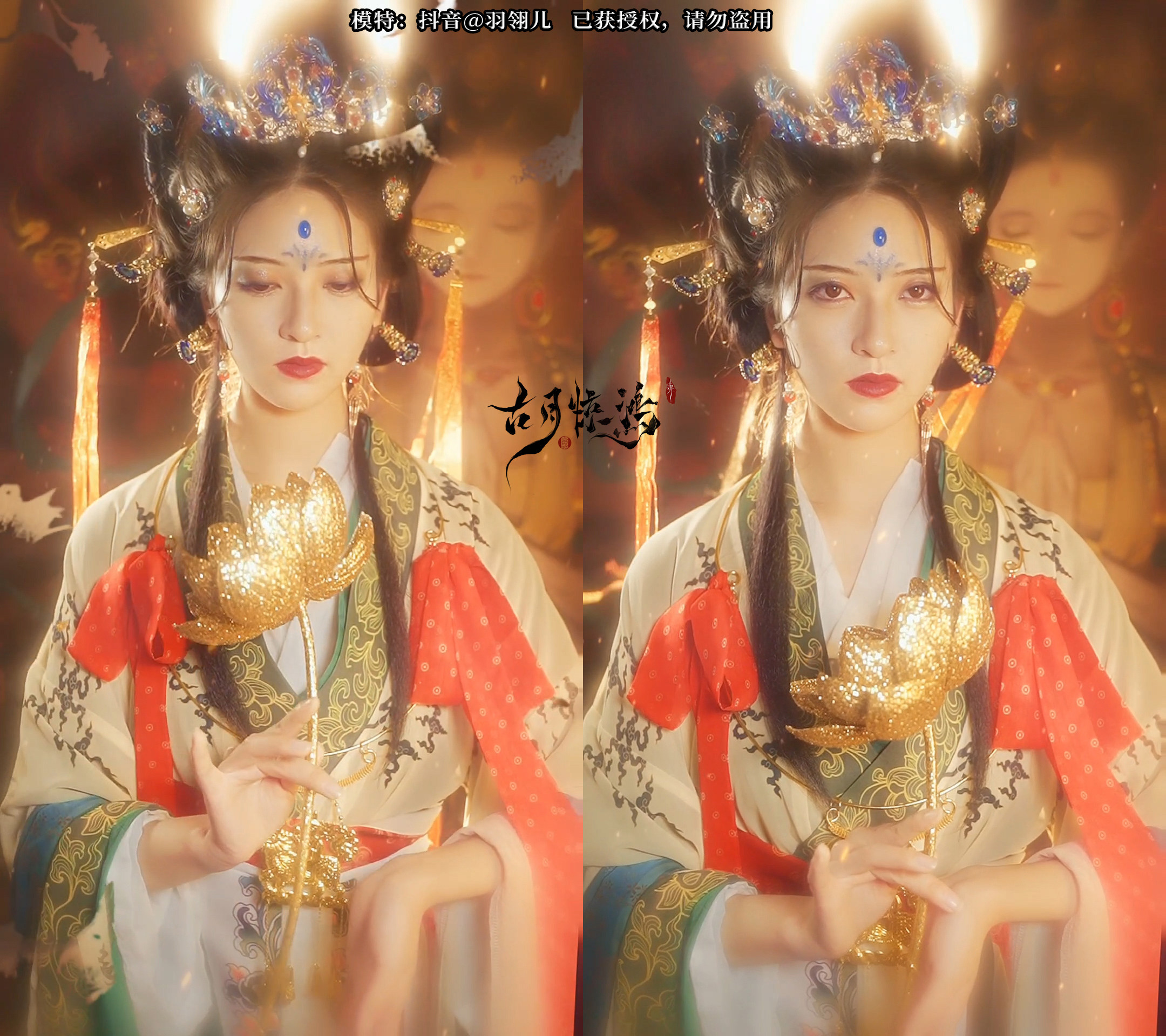 Golden Lotus Hanfu Props Walking Show с Dunhuang Custom Gold Peord