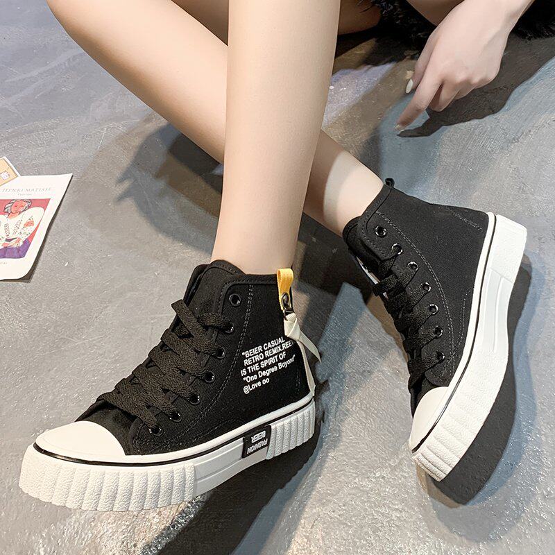 Модные туфли, высокие парусиновые туфли, женские внутренние увеличивающие обувь, универсальные черные ретро в гонконгском стиле, персонализированные молнии в стиле хип-хоп, большой размер 41, лето
