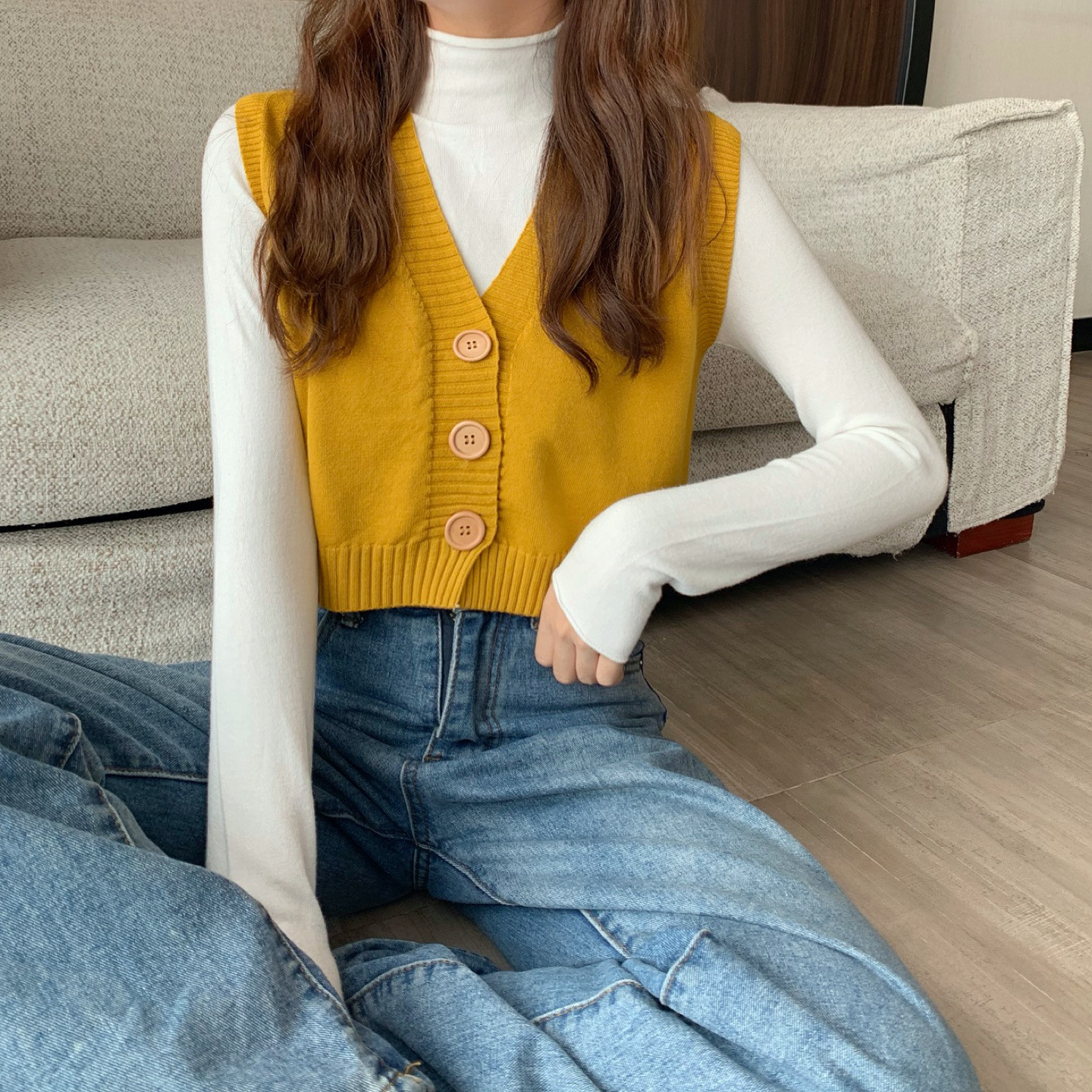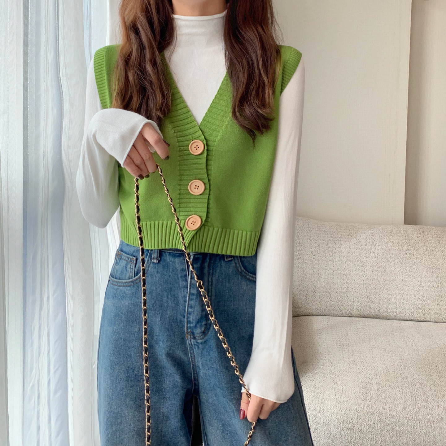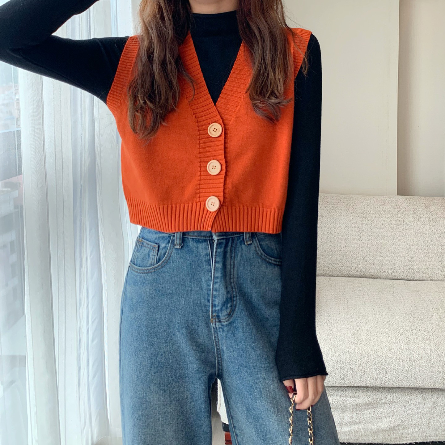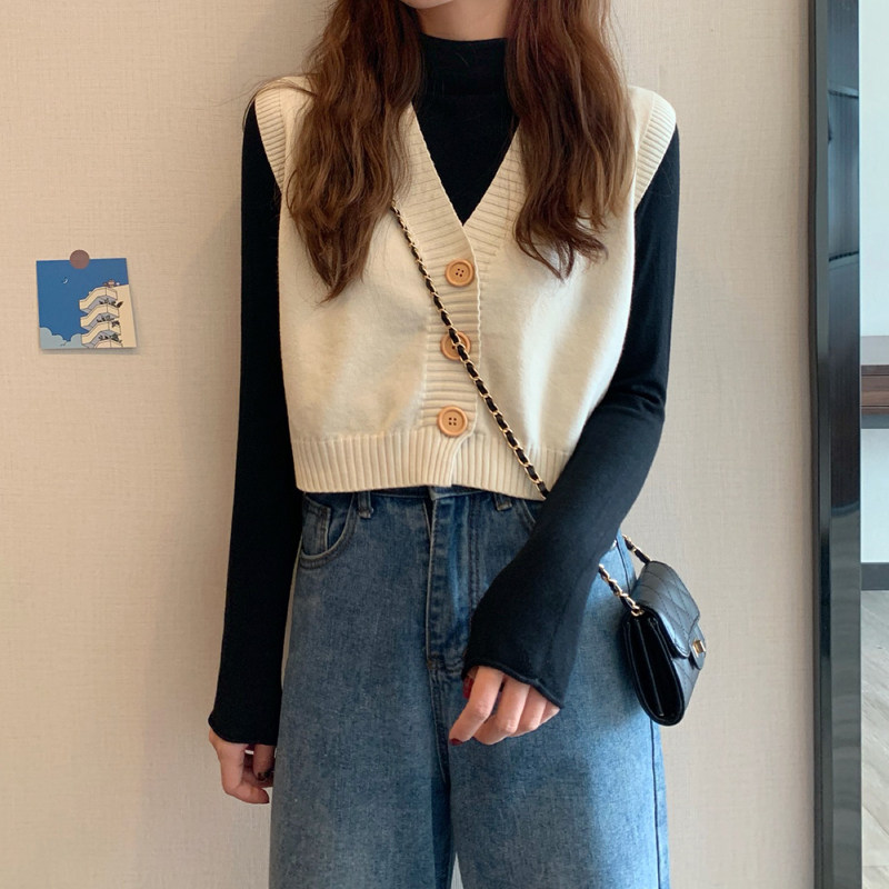 Трикотажный весенний тонкий брендовый кардиган без рукавов, короткий свитер, жилет, майка топ, куртка, оверсайз, V-образный вырез