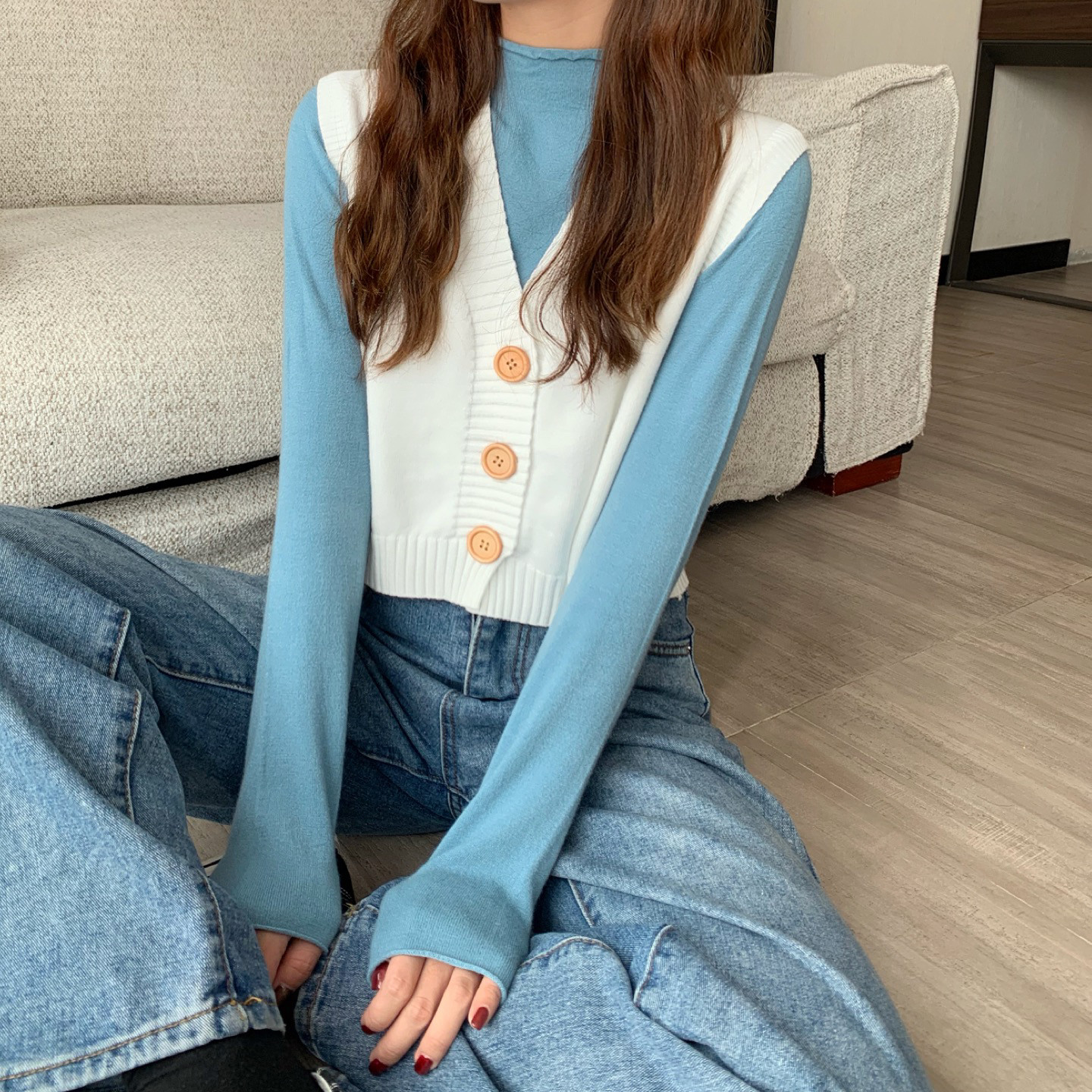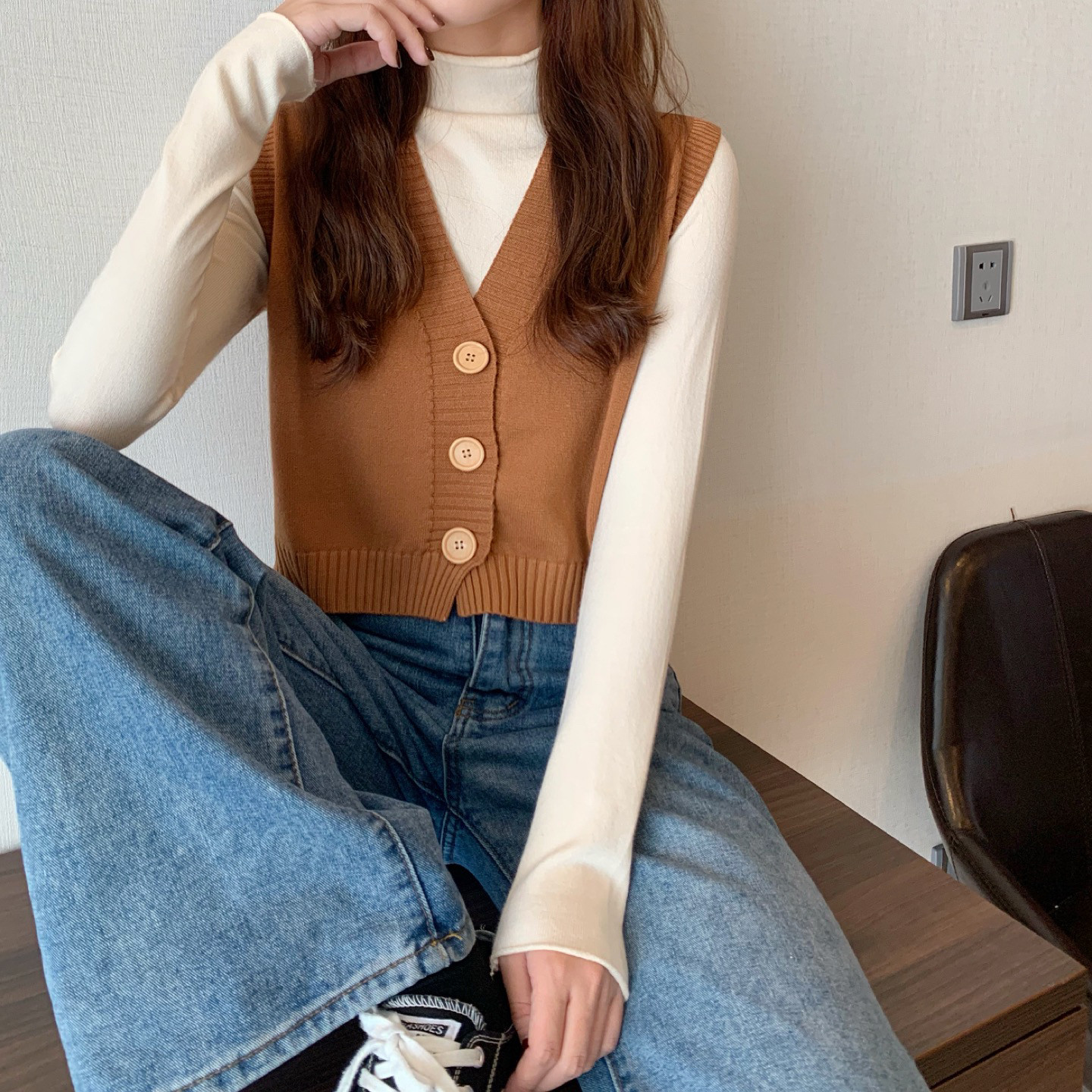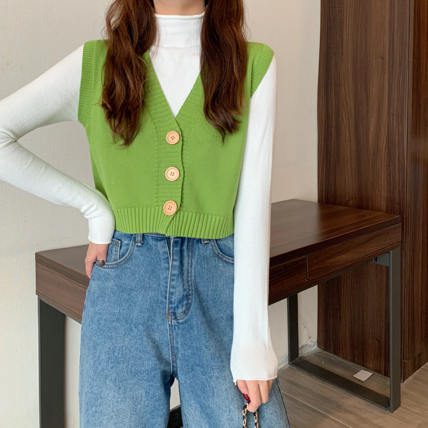 Трикотажный весенний тонкий брендовый кардиган без рукавов, короткий свитер, жилет, майка топ, куртка, оверсайз, V-образный вырез