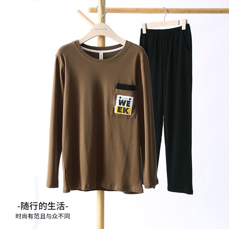 芬腾 Хлопковая демисезонная пижама, лонгслив, хлопковый комплект, в корейском стиле