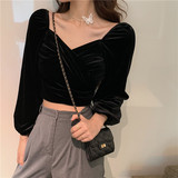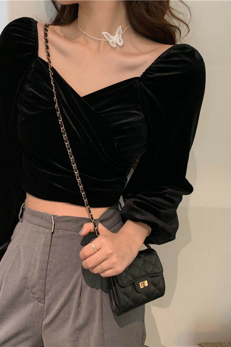 Весенний ретро бархатный базовый приятный телу лонгслив, большой размер, V-образный вырез, в западном стиле