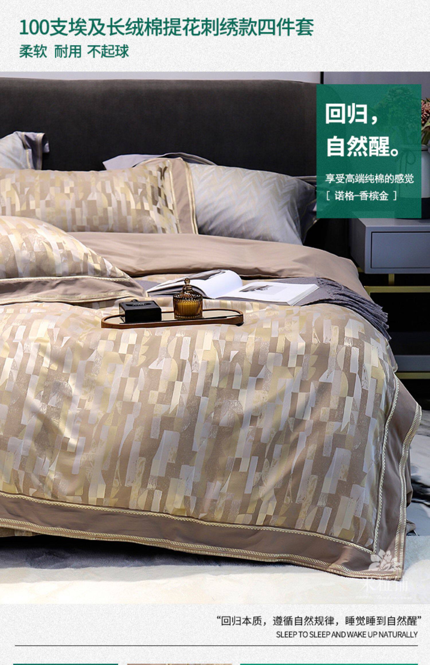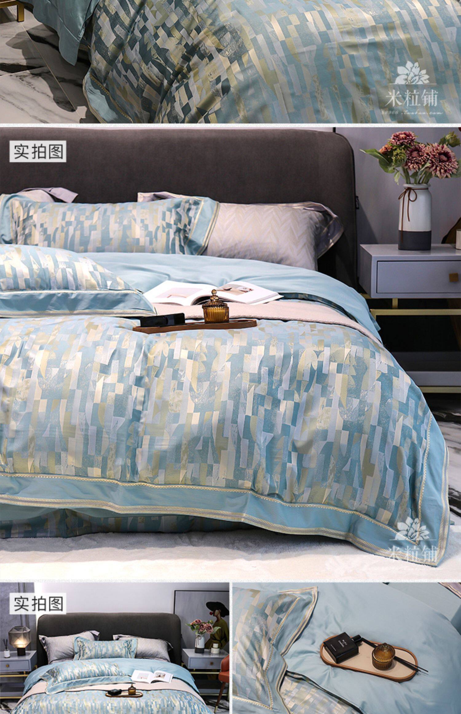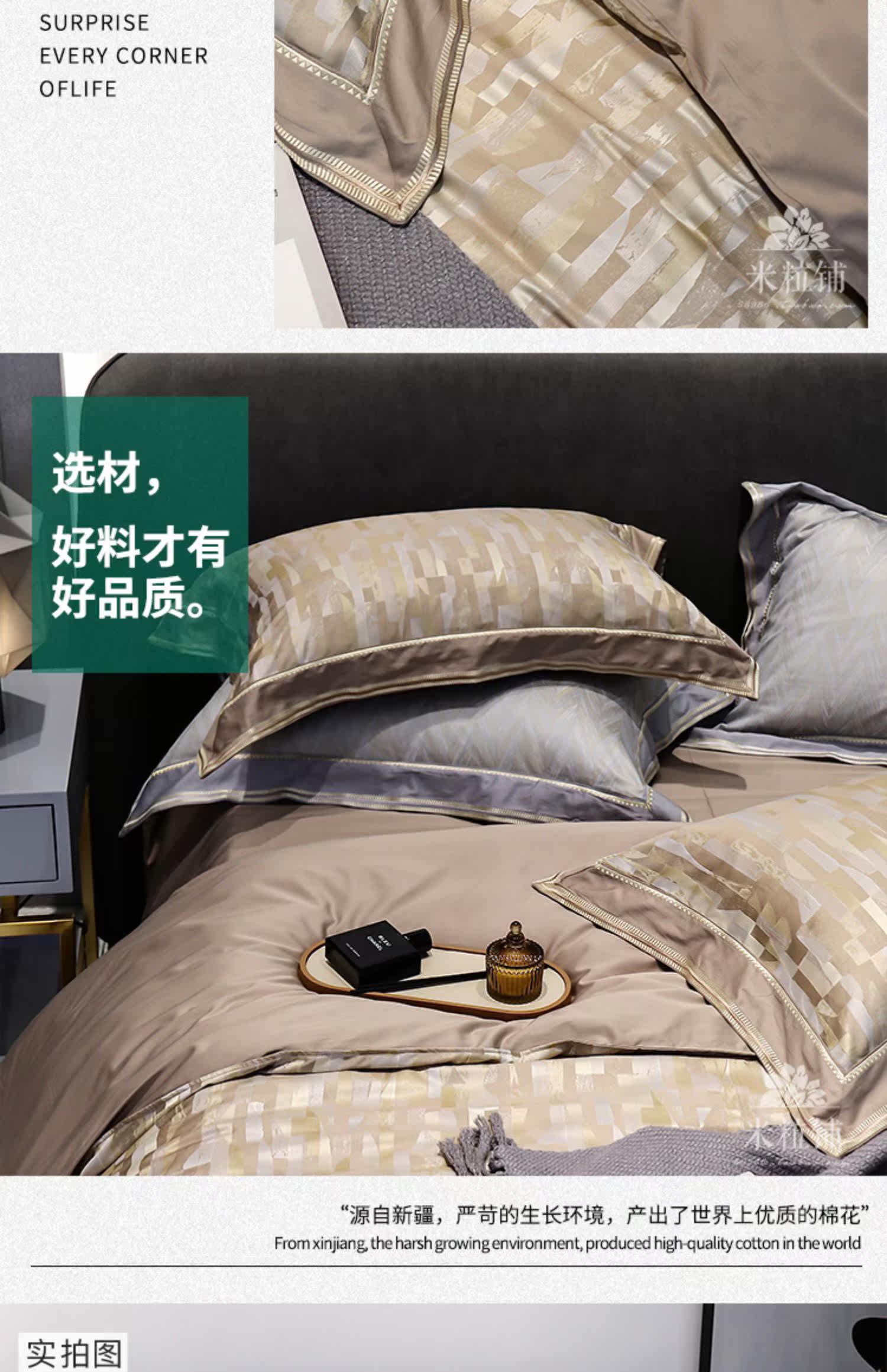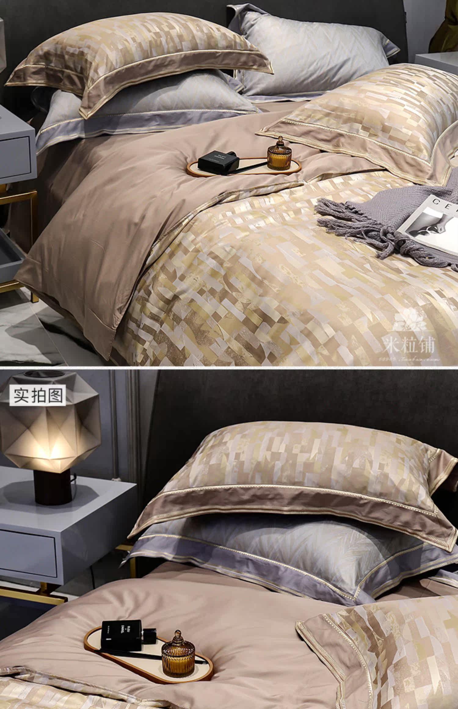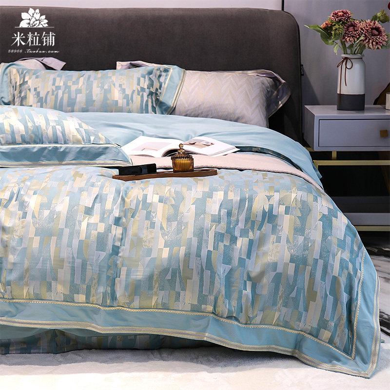 Современный хлопковый комплект, хлопковая простыня, пододеяльник, покрывало, легкий роскошный стиль, 100 шт, 4 предмета, простой и элегантный дизайн
