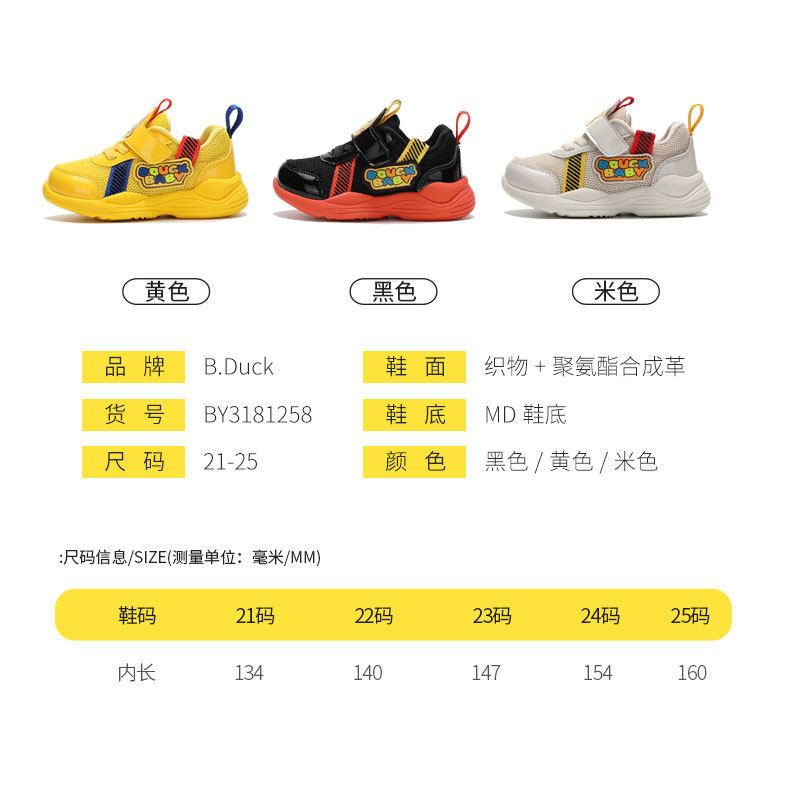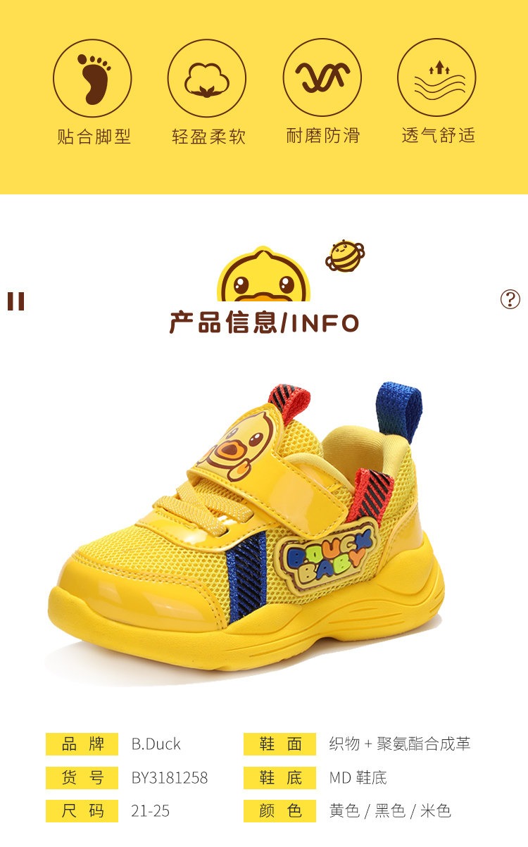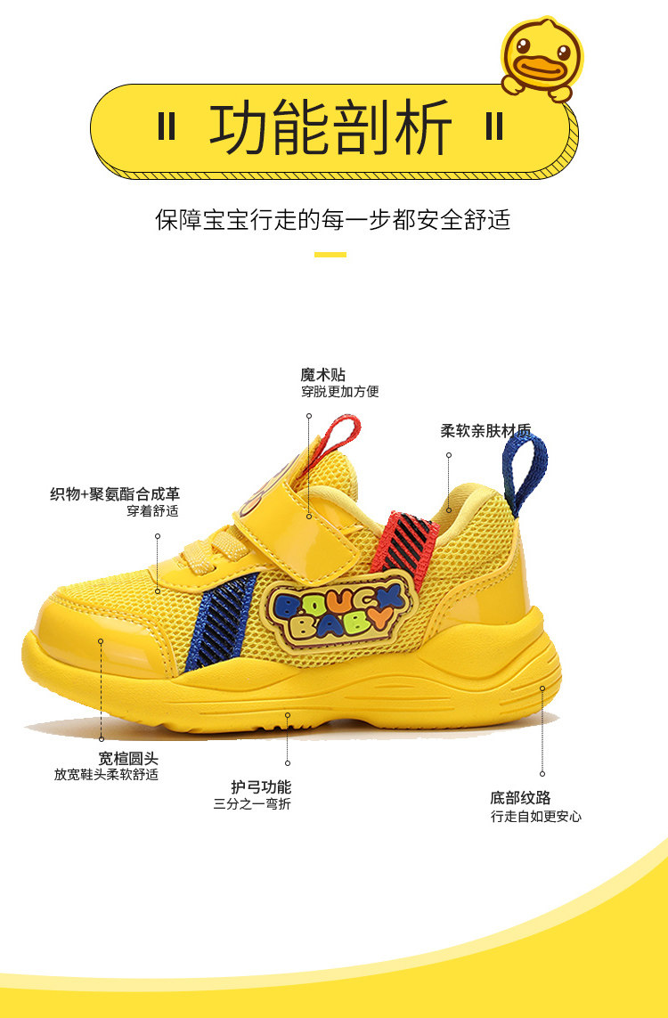 [小黄鸭童鞋儿童运动鞋春秋男童休闲鞋小孩宝宝软底学步单鞋1-3岁]