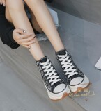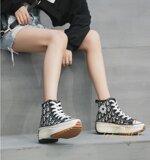 Невидимое внутреннее увеличение высоты на 9 см, классические и универсальные женские туфли Laika с высоким голенищем из парусины на шнуровке спереди, нескользящие женские туфли Laika на толстой подошве 7588
