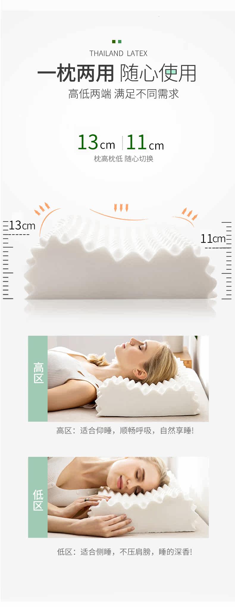 舒倚安 Антибактериальная натуральная резиновая подушка, Таиланд, с защитой шеи