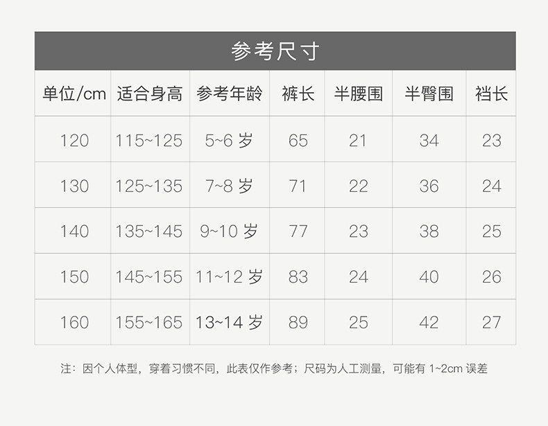 | Справочная высота: | 120 см (120 см (стандартная высота 115 ~ 125 см)), 130 см (130 см (стандартная высота 125 ~ 135 см)), 140 см (140 см (стандартная высота 135 ~ 145 см)), 150 см (150 см (стандартная высота 145 ~ 155 см)), 160 см (160 см (стандартная высота 155 ~ 165 см)) |