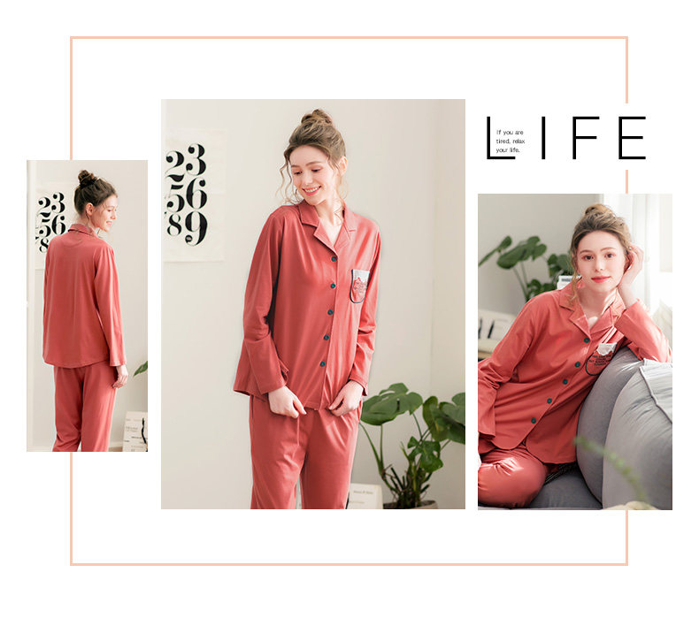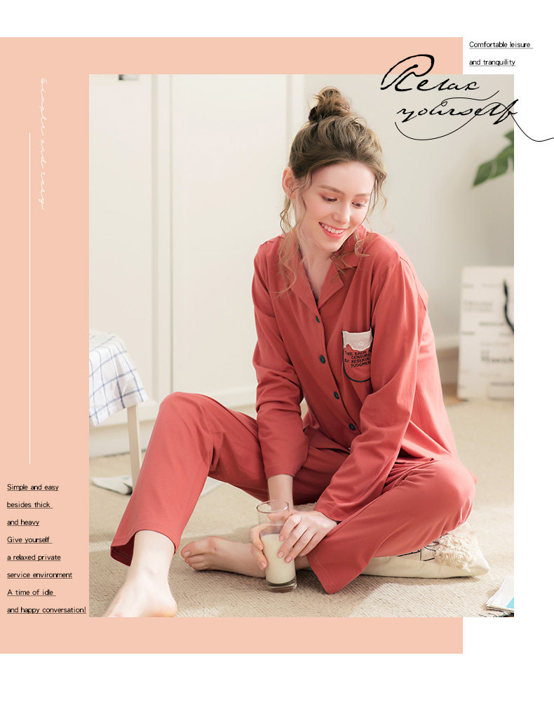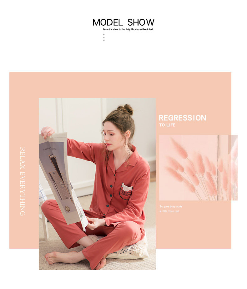 芬腾 Осенняя пижама, хлопковый лонгслив, милый кардиган, демисезонный комплект, в корейском стиле