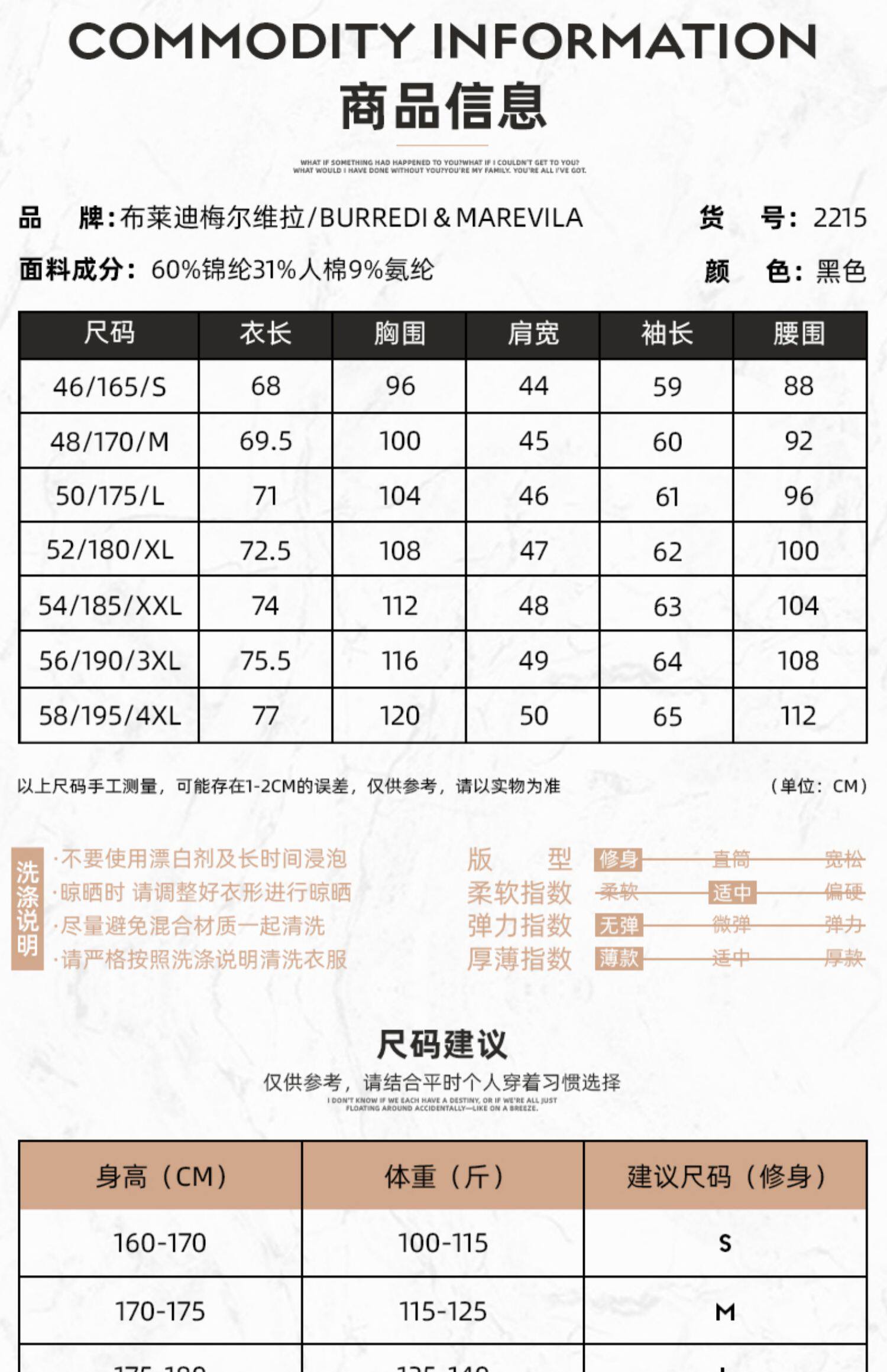 | Размер: | 46/S/165, 48/M/170, 50/L/175, 52/XL/180, 54/XXL/185, 56/XXXL/190, 58/XXXXL/195, Пожалуйста, проконсультируйтесь с обслуживанием клиентов для точного кода |