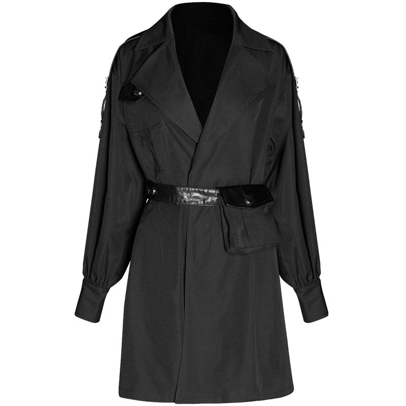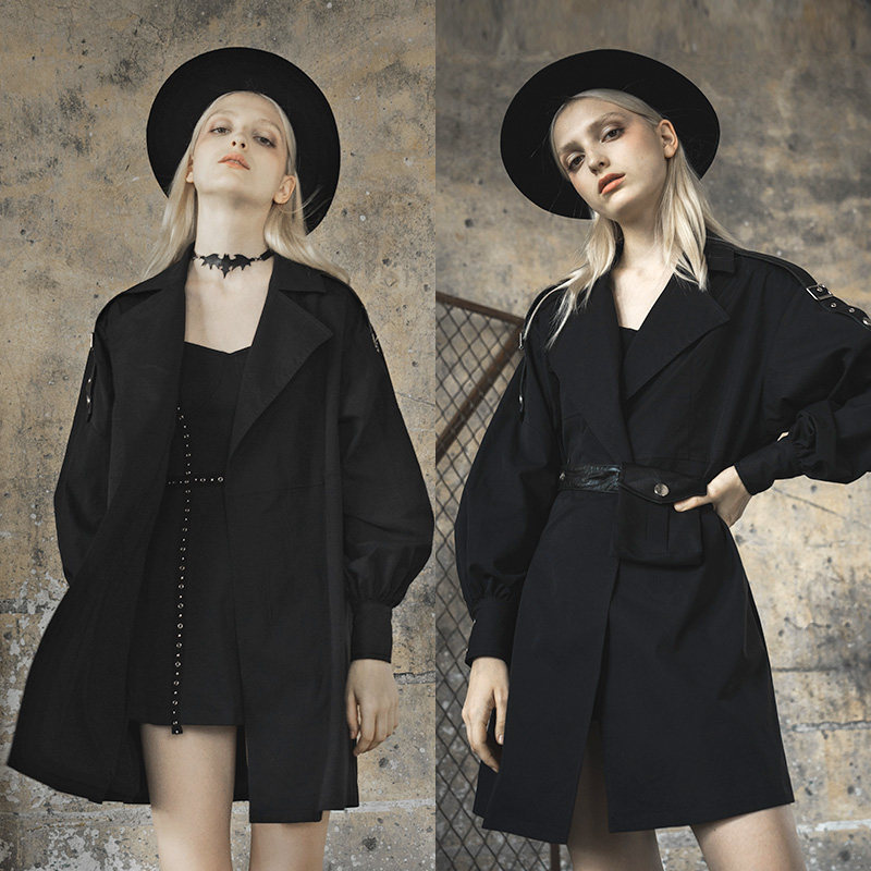 Оригинальная черная демисезонная куртка, длинный модный фонарь, универсальный плащ, свободный крой, средней длины