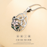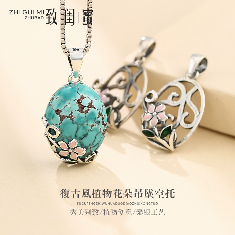 Ретро подвеска, бирюзовая инкрустация камня из воскового агата, яшма, серебро 925 пробы