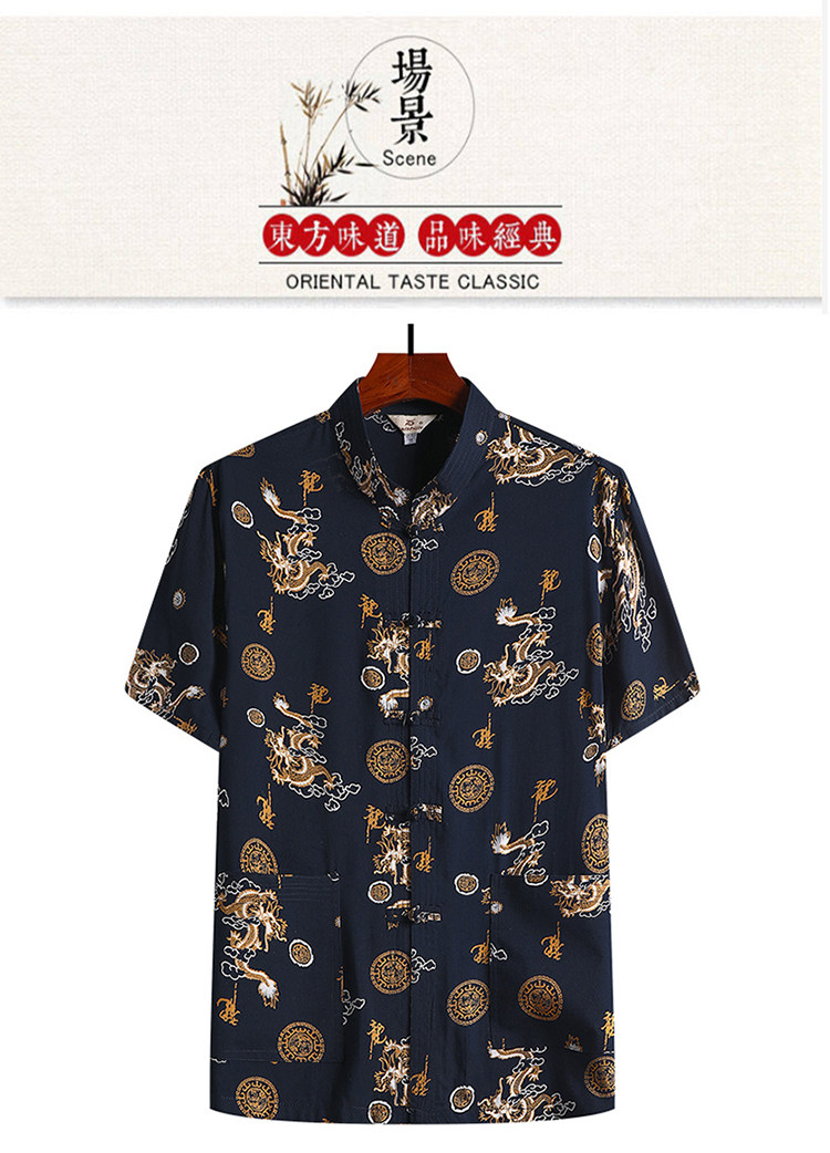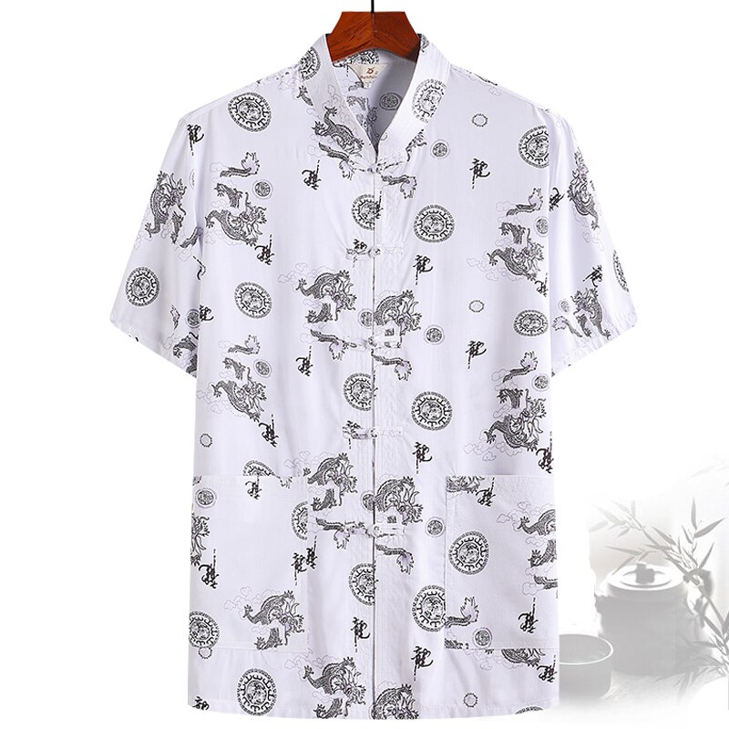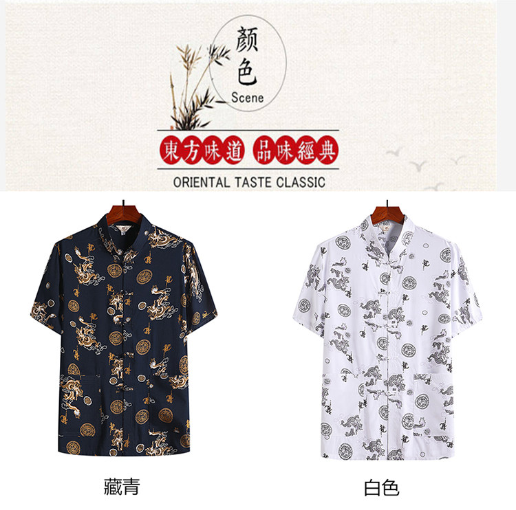 Летняя рубашка для отдыха, китайский стиль, для среднего возраста, короткий рукав, оверсайз