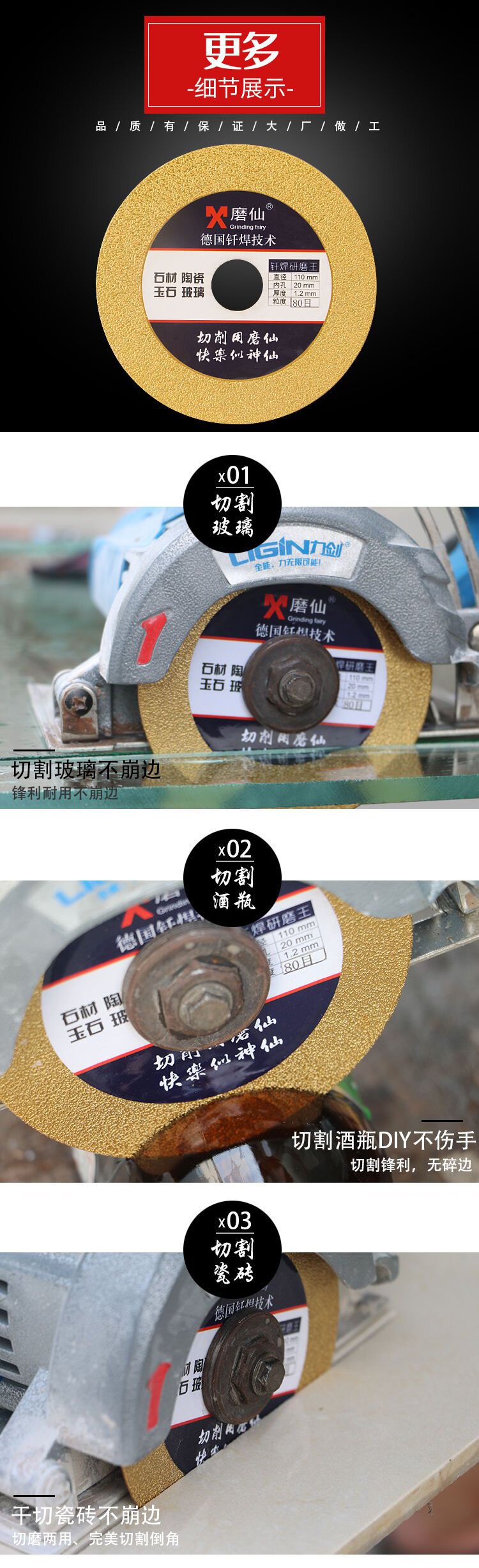 Специальная режущая лист бесплатного судоходного стекла, керамическая плитанная плитка, нефрита, сплит -бутылочные лезвия