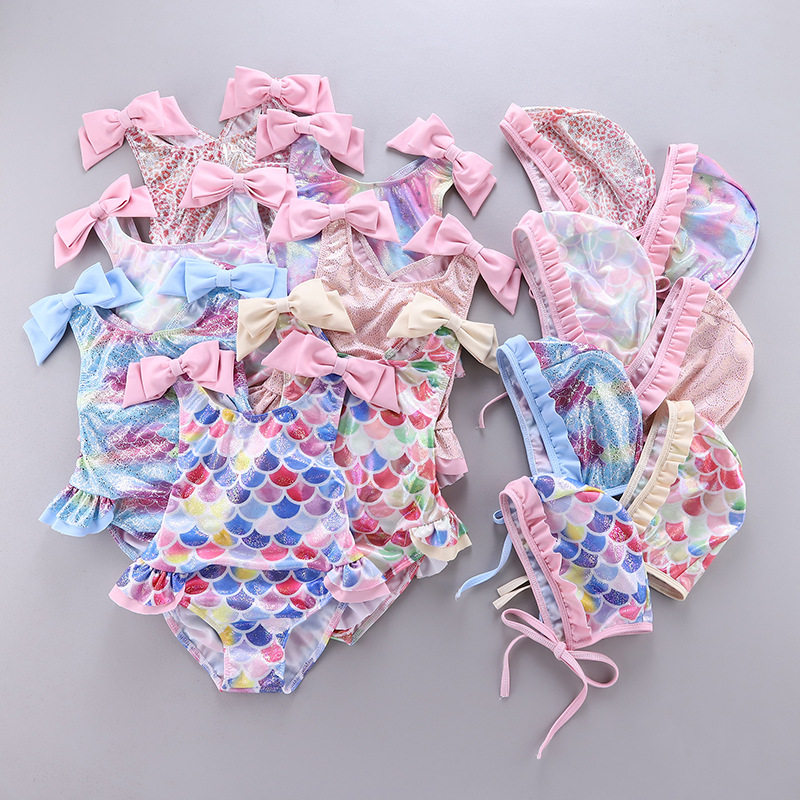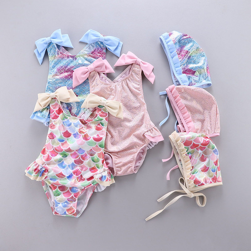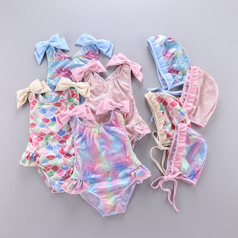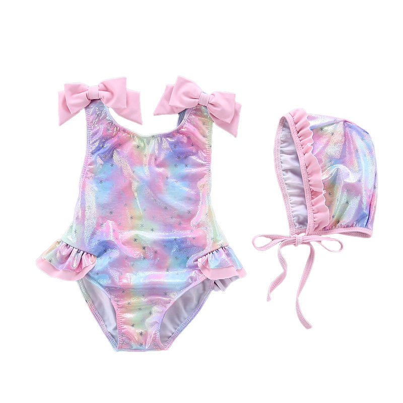 Детский радужный купальник, летняя плавательная шапочка для плавания