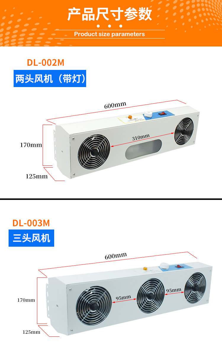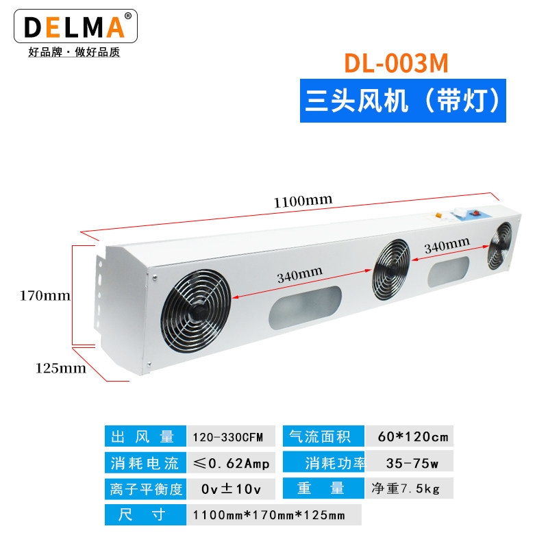 Многообработанный электростатический ионный вентилятор 3 головка DL-003M настольная подвеска промышленное электростатическое устранение вентиляционного вентилятора