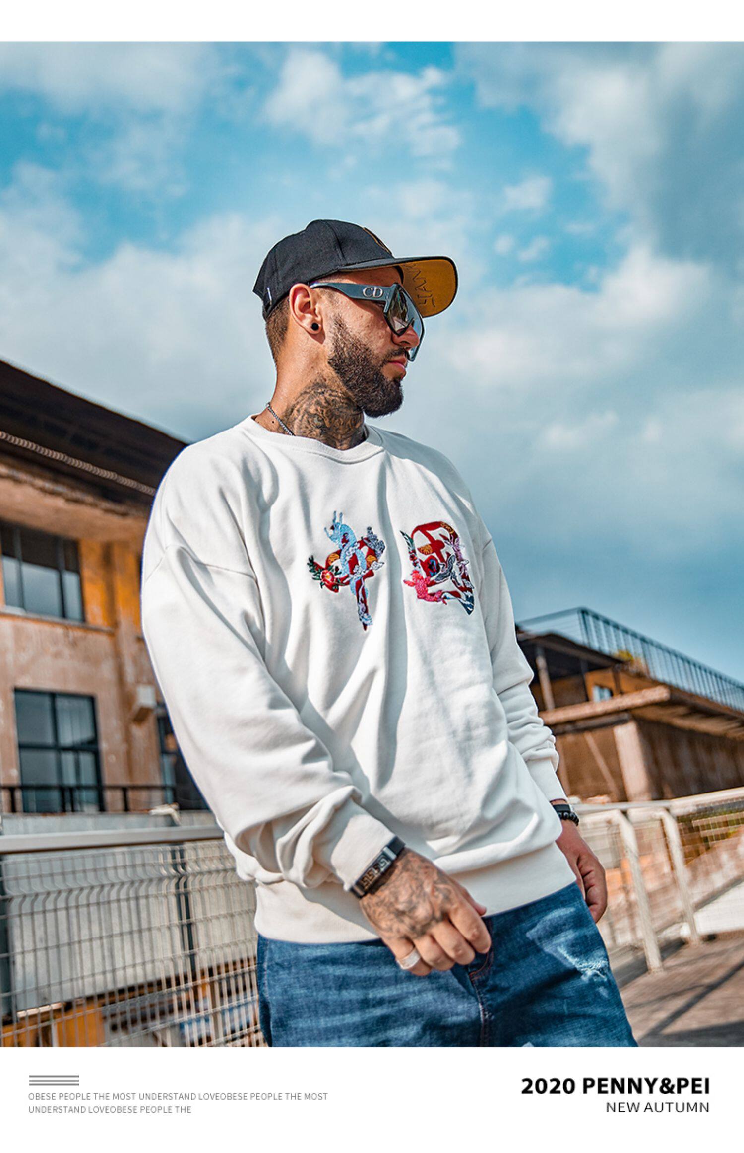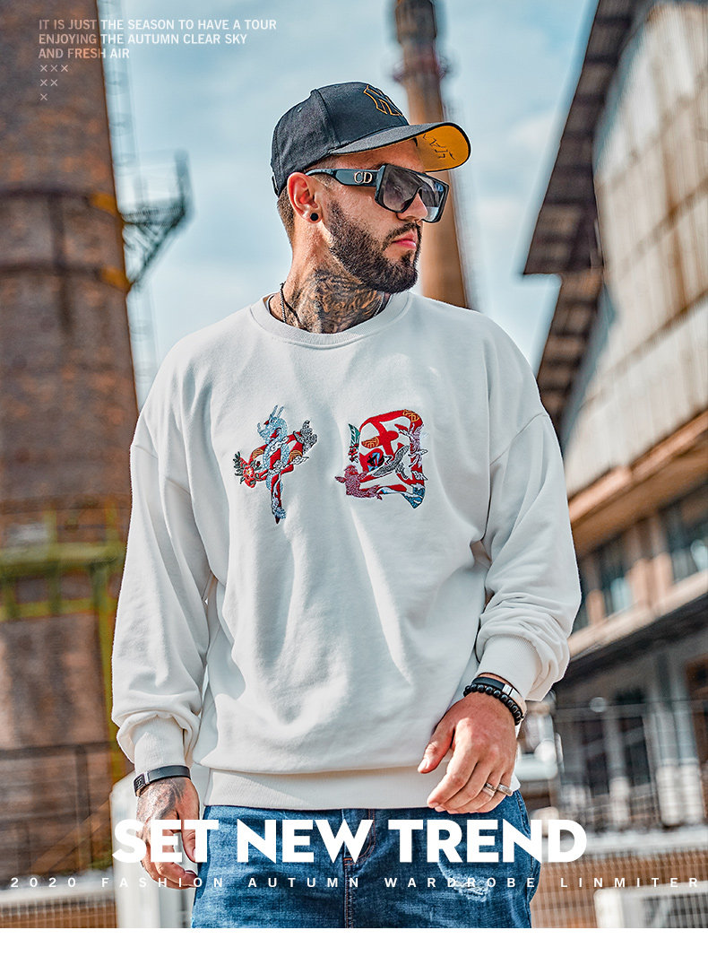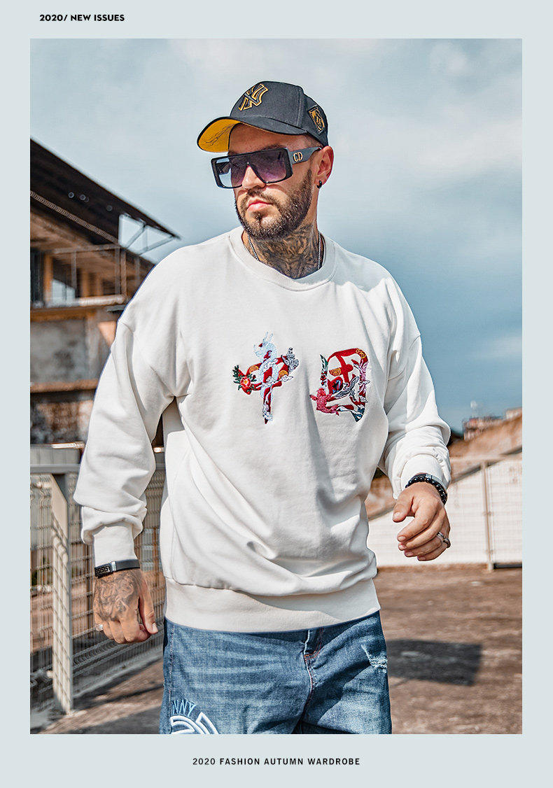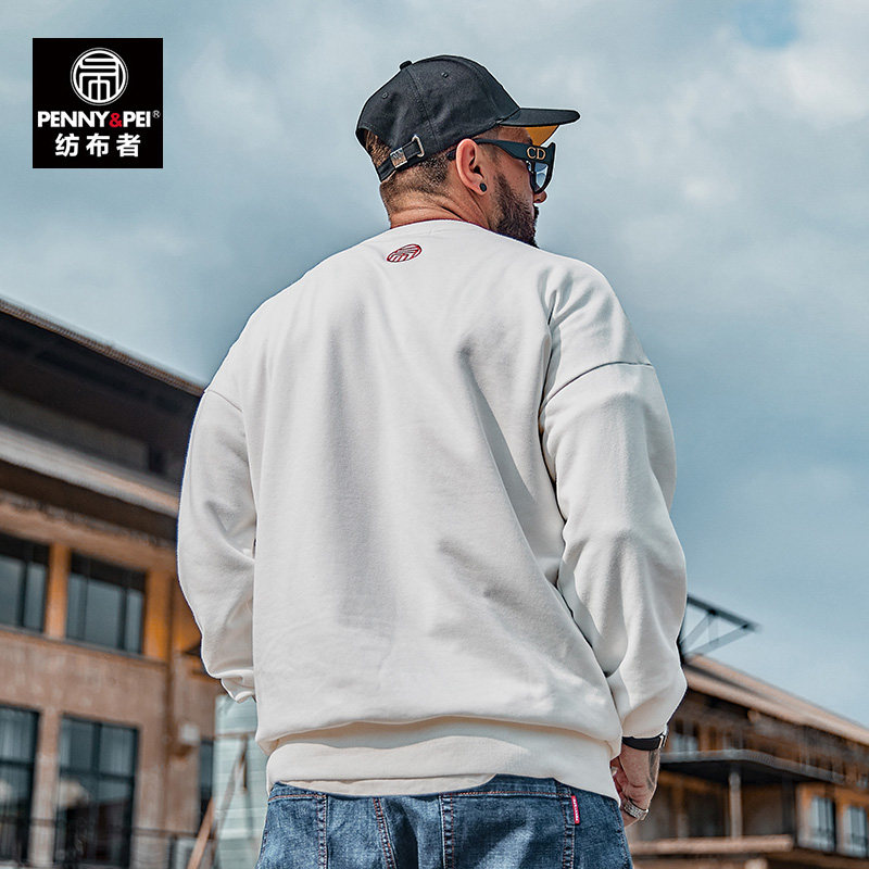 Текстильный прилив мужской мужской мужской свитер, жир, жир, увеличение бархатной осень и зимние буквы вышивки