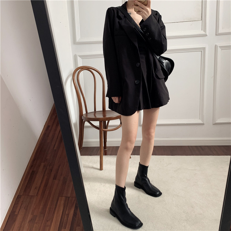 Martens, демисезонные черные челси в английском стиле, короткие сапоги, ботинки, в корейском стиле, в британском стиле