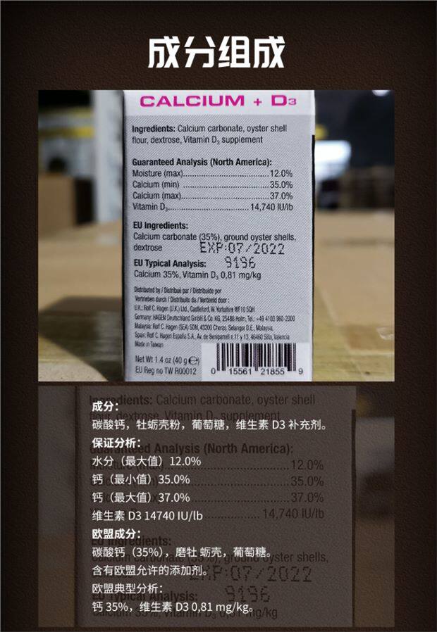 Бывший канадский канадский gijin exoterra calcium calcium courge содержит D3 Ящерицы черепахи Черепаха Цвет кальциевой добавки витамины витамины