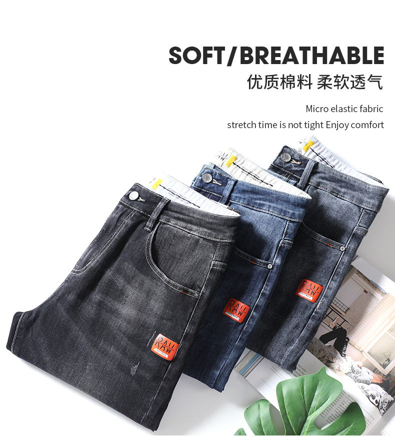 Эластичные осенние джинсы для отдыха, модные трендовые штаны, свободный прямой крой