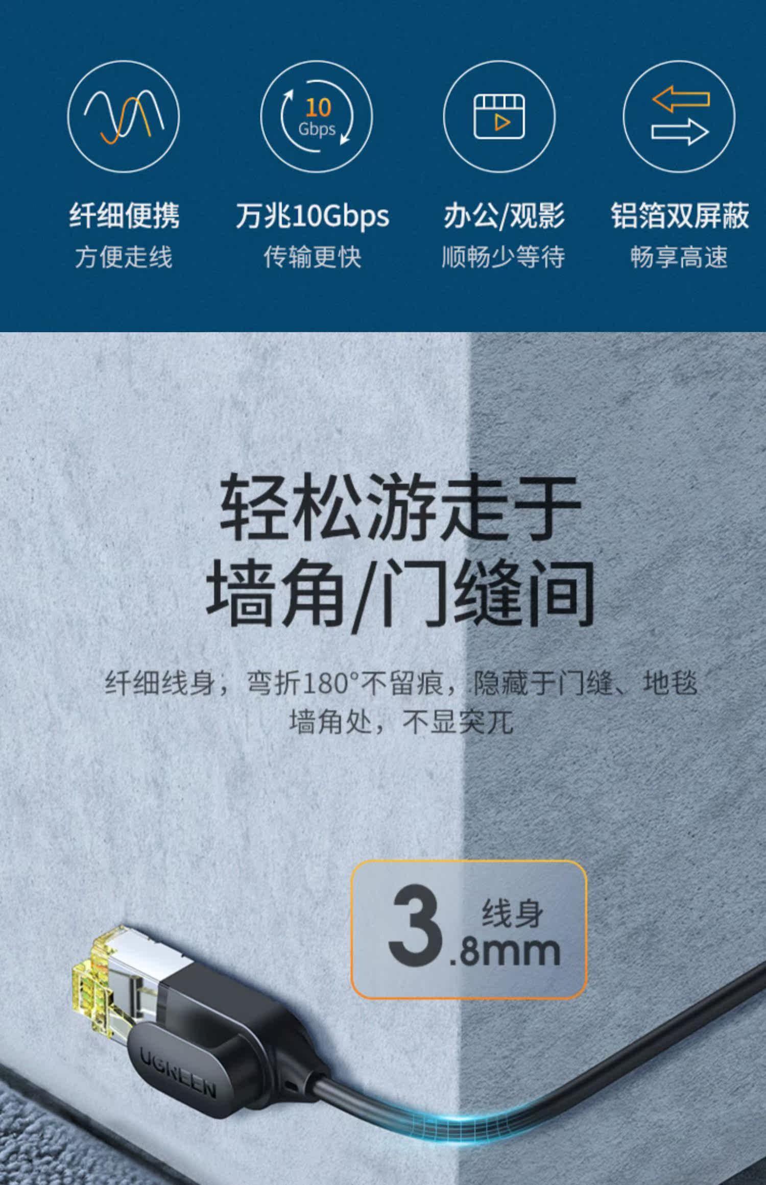 Green Union Super Six Fine Cable десять тысяч микро -микро -Компьютер -маршрутизатор Cat6a High -Speed Сетевая линия Семейство Anty -Interference