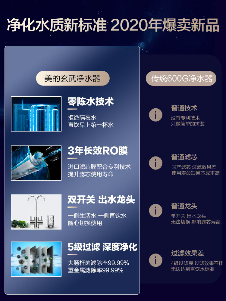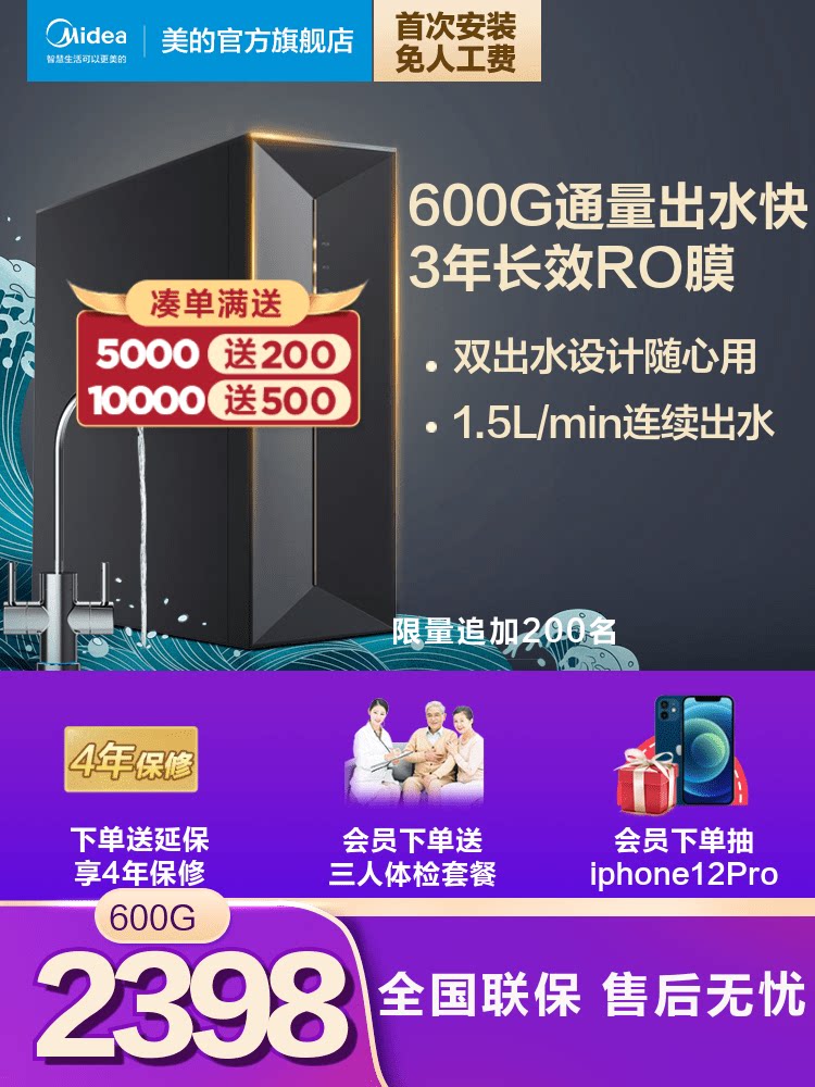 Midea Smart Home Appliance Zero-Cold Water Purifier Домохозяйство прямое питьевое фильтр кухонный фильтр Xuanwu Water Purifier 600G Флагман