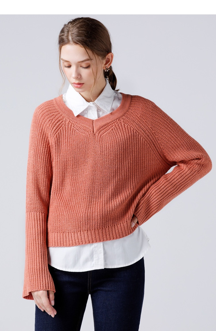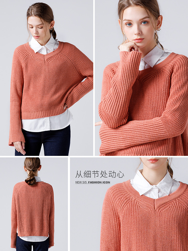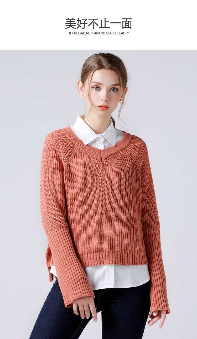 艾米恋 Мегафон, осенний трикотажный свитер, V-образный вырез, коллекция 2021, оверсайз, ассиметричный крой