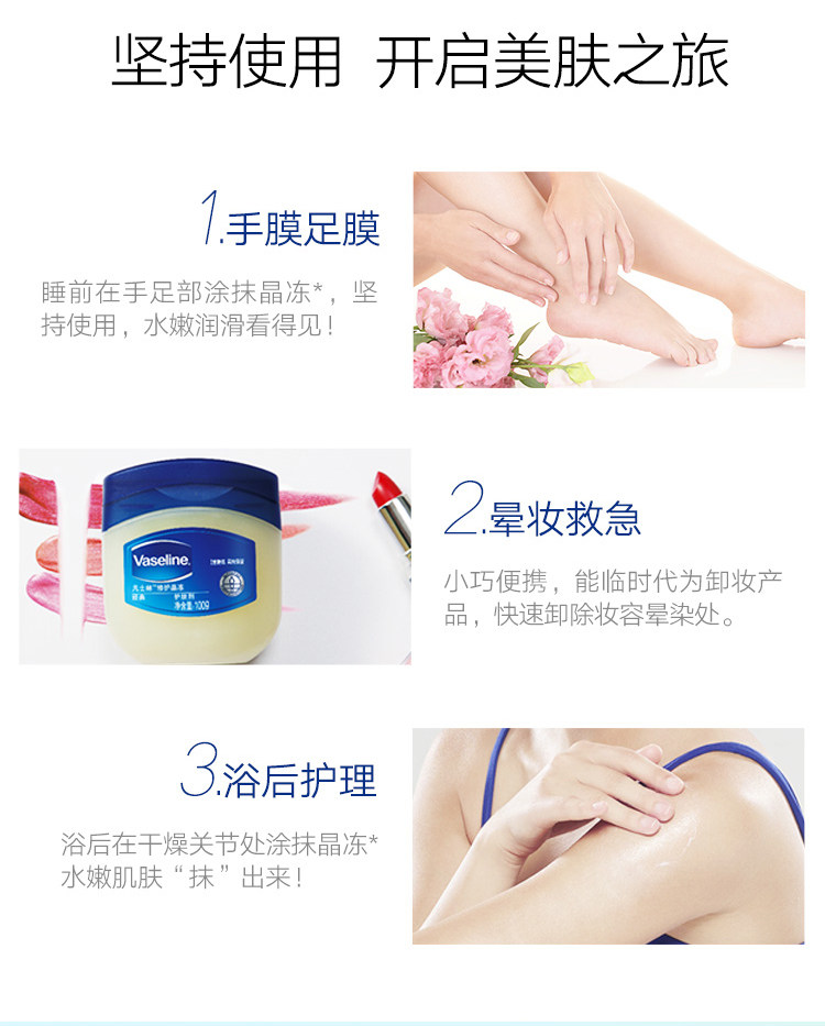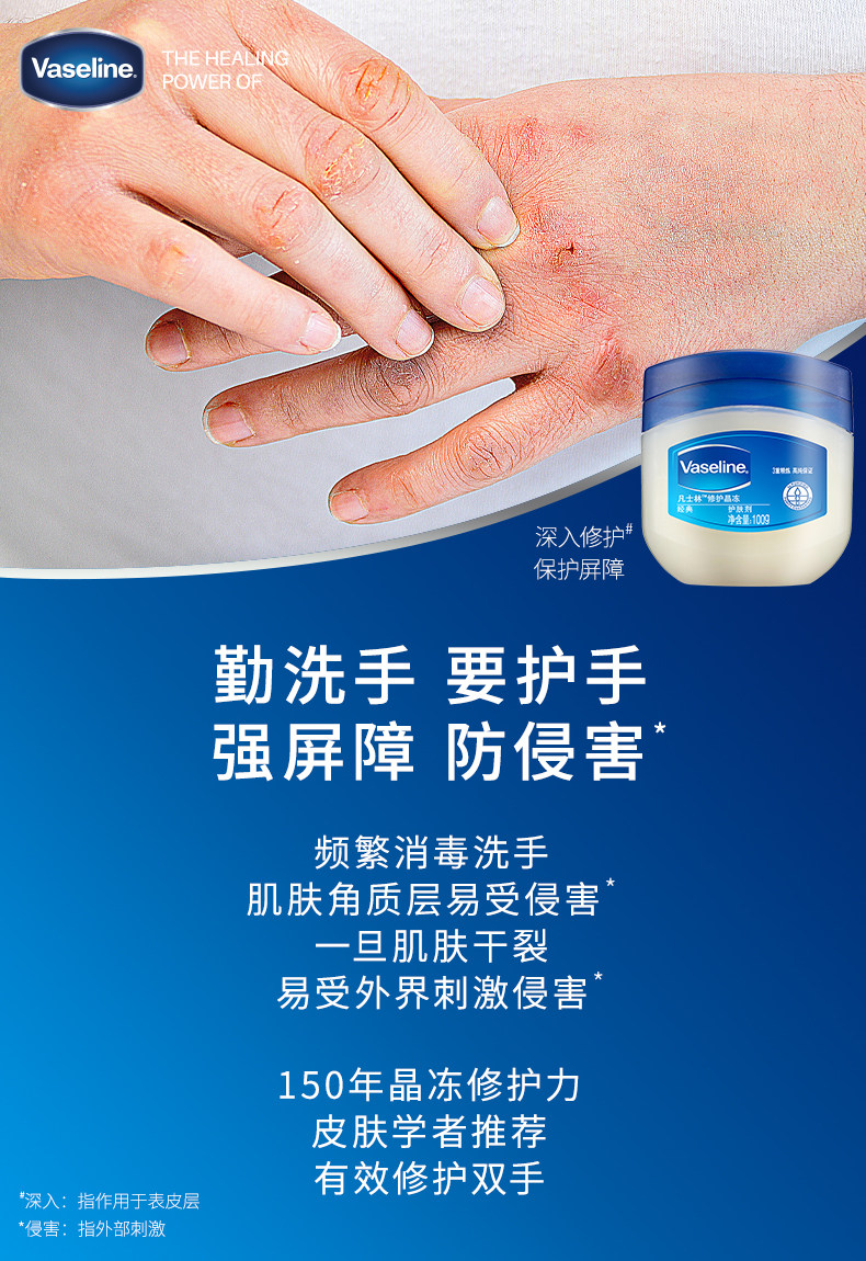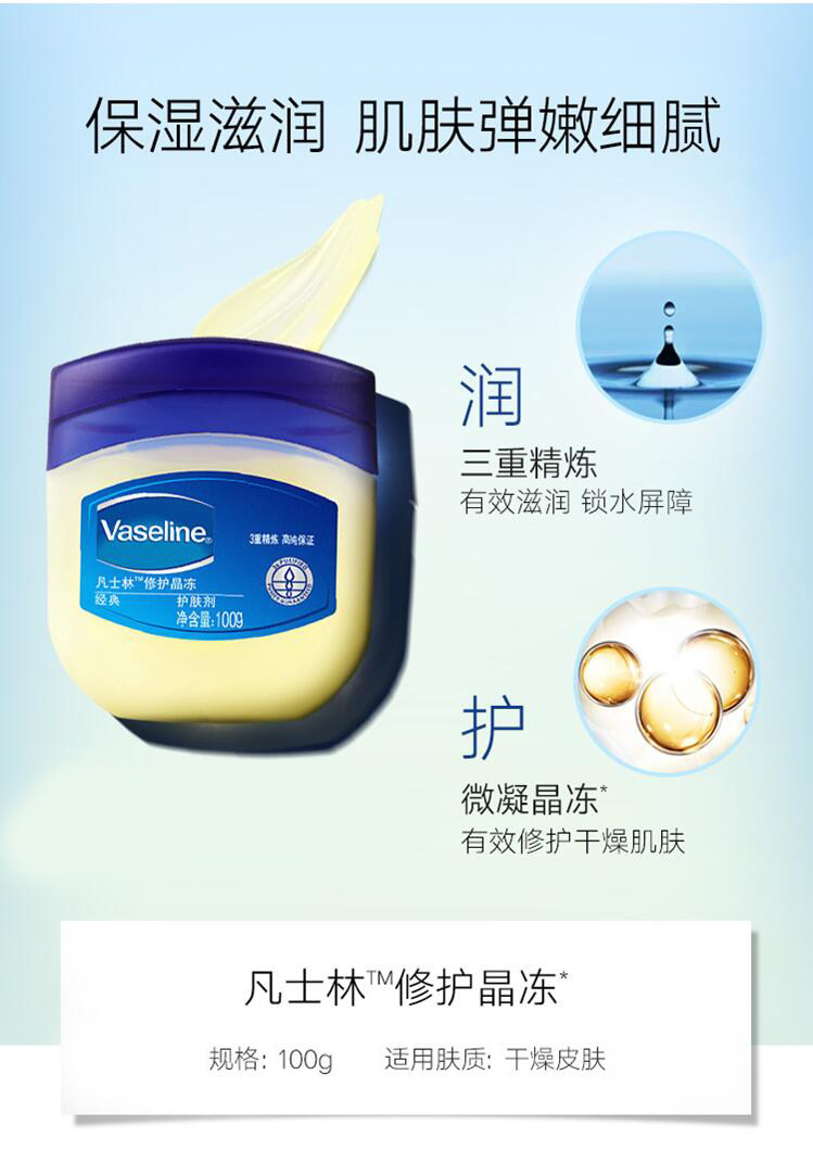 Vaseline/凡士林 Аутентичный классический ремонт кристалл замороженные 100 г, увлажняет и увлажняет.