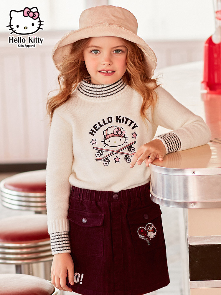 Hello Kitty, мультяшный пуховик, удерживающий тепло свитер, детская одежда, коллекция 2021, в западном стиле, высокий воротник