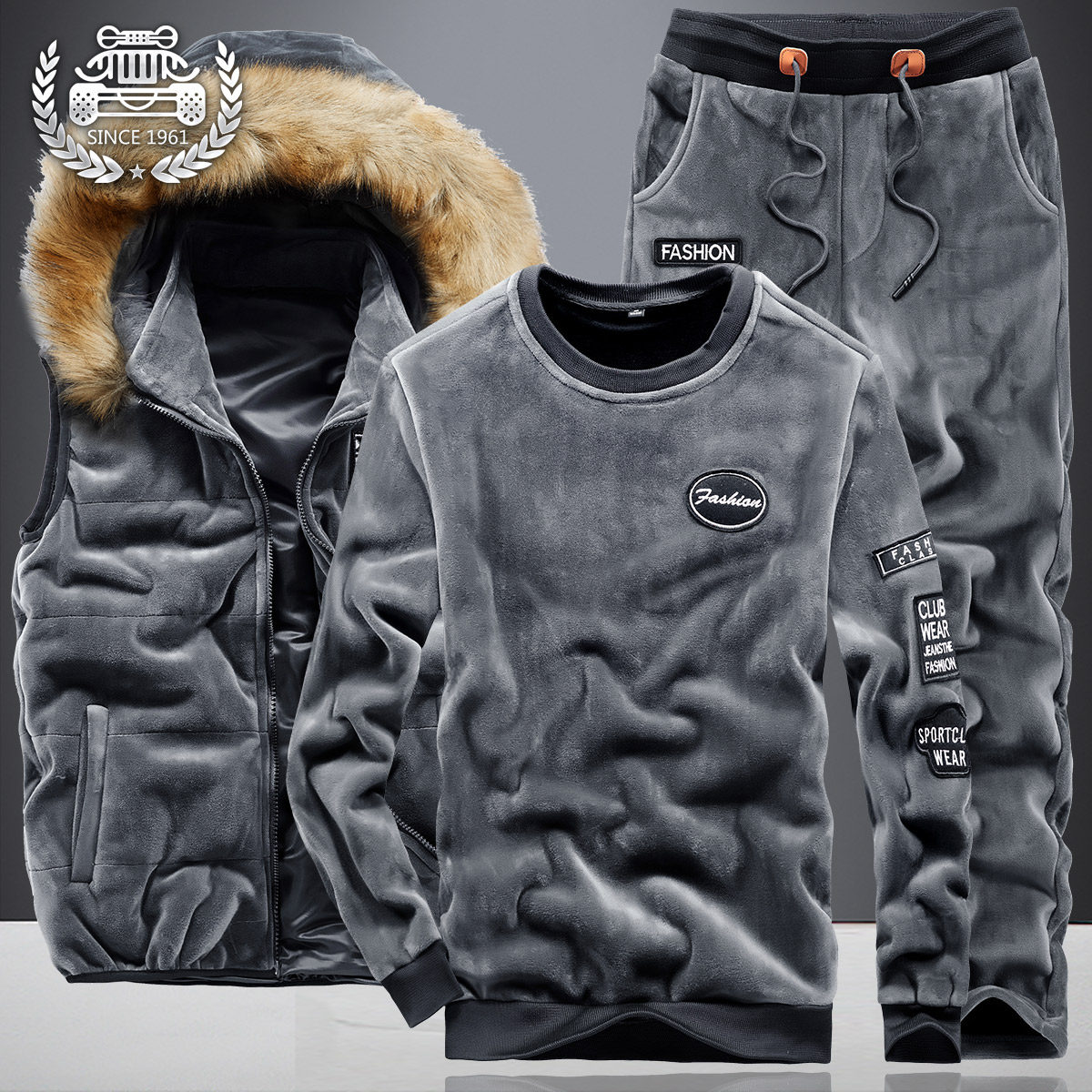 Демисезонная бархатная толстовка, комплект, спортивный костюм, 2020, 3 предмета, подходит для подростков, в корейском стиле, большой размер