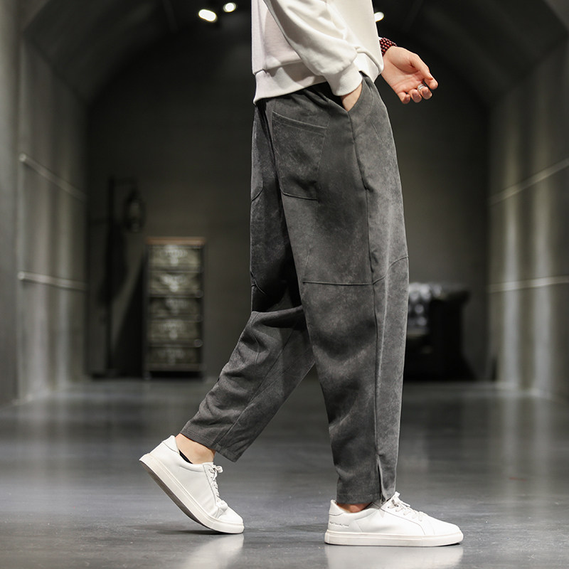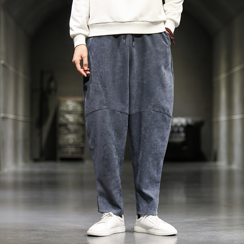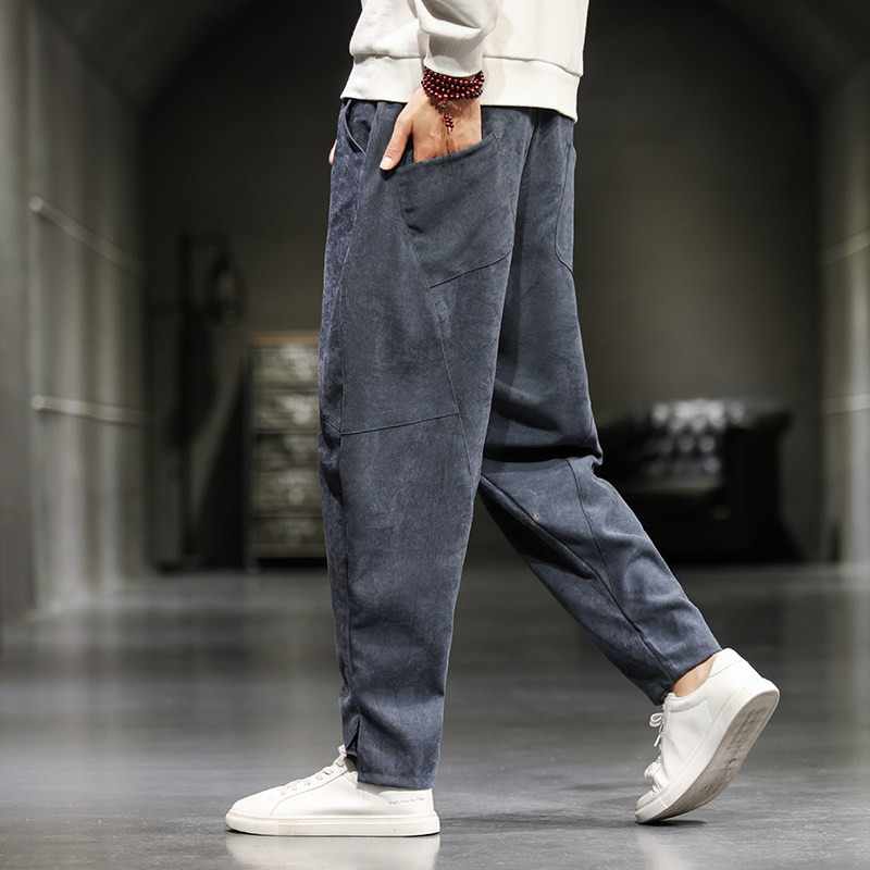 Осенние вельветовые штаны, китайский стиль, свободный прямой крой, большой размер