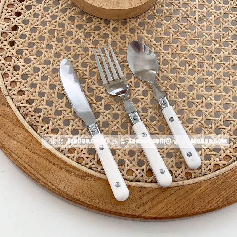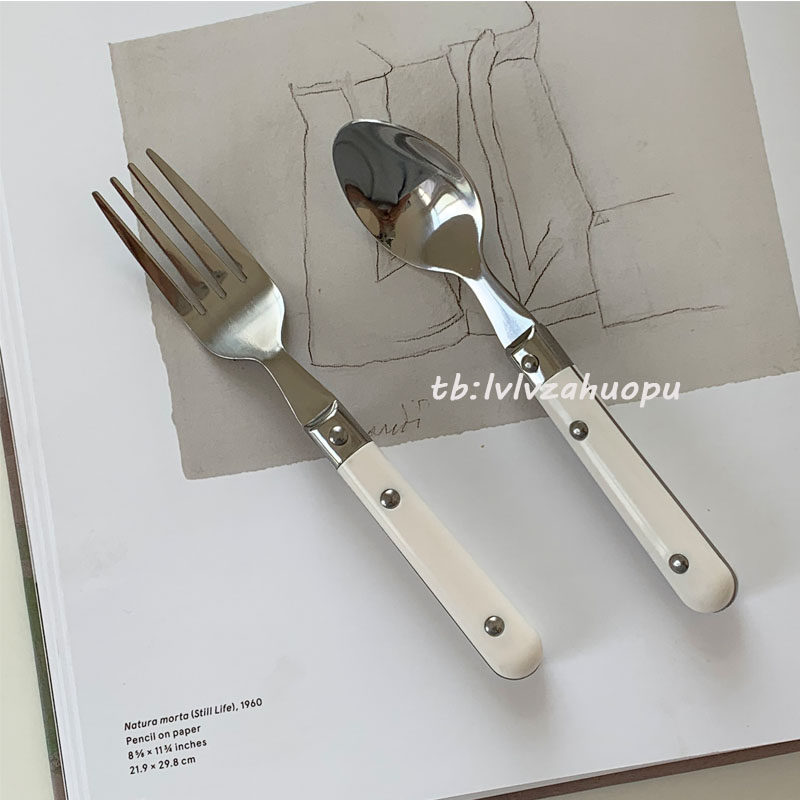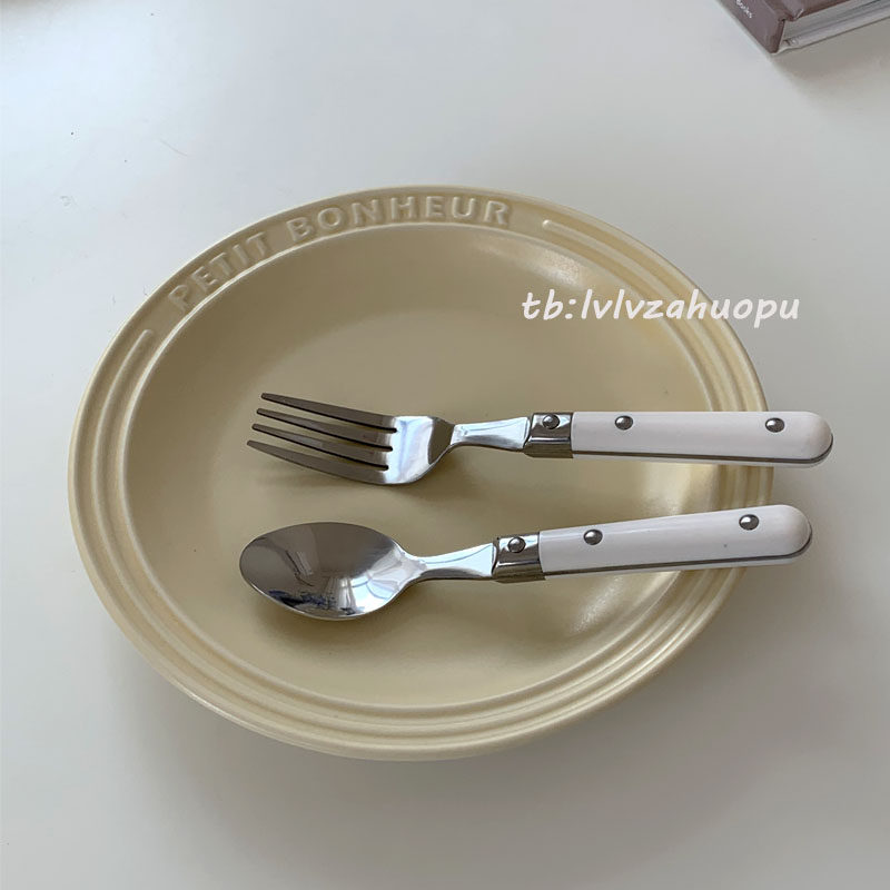 - Кремовая белая ложка вилка набор