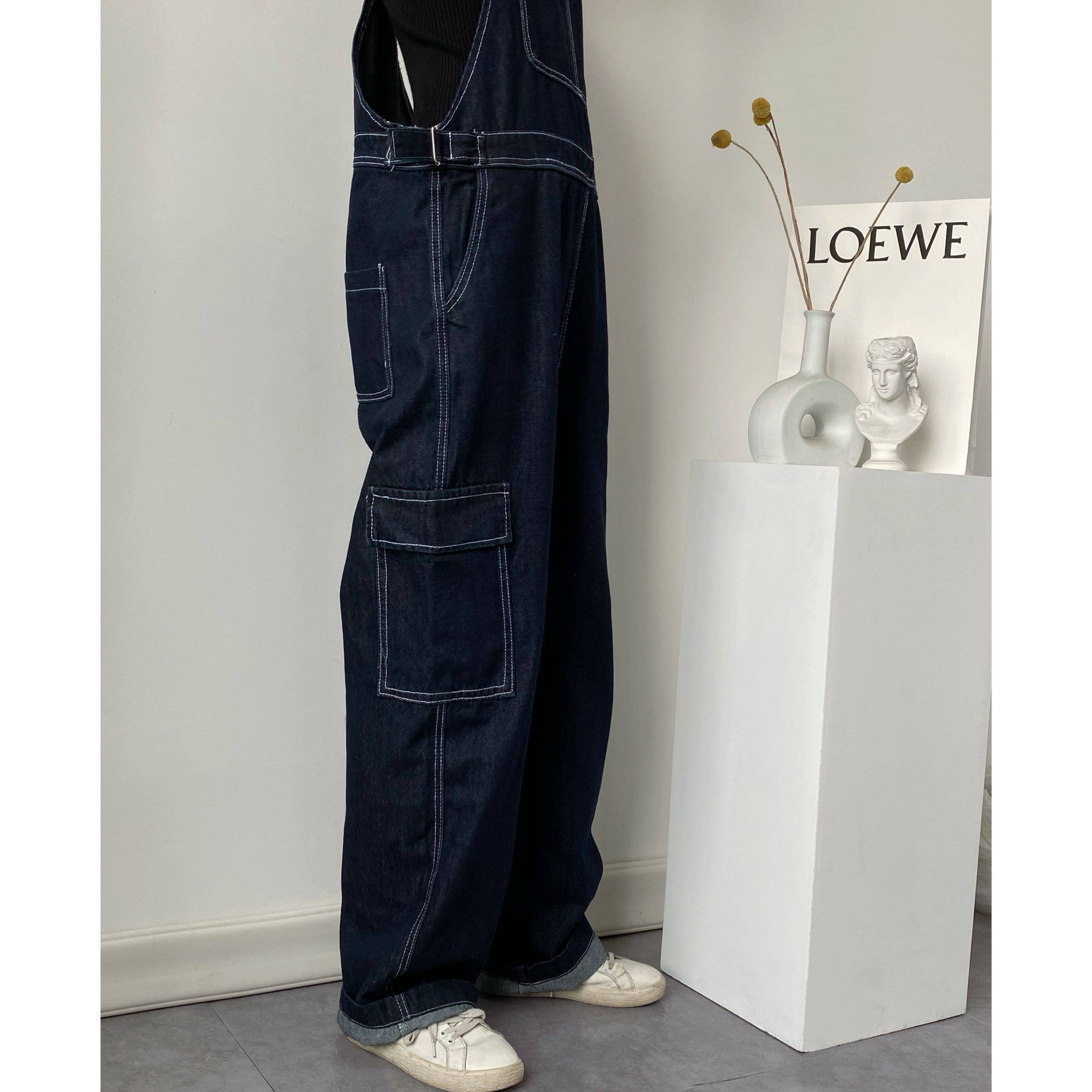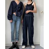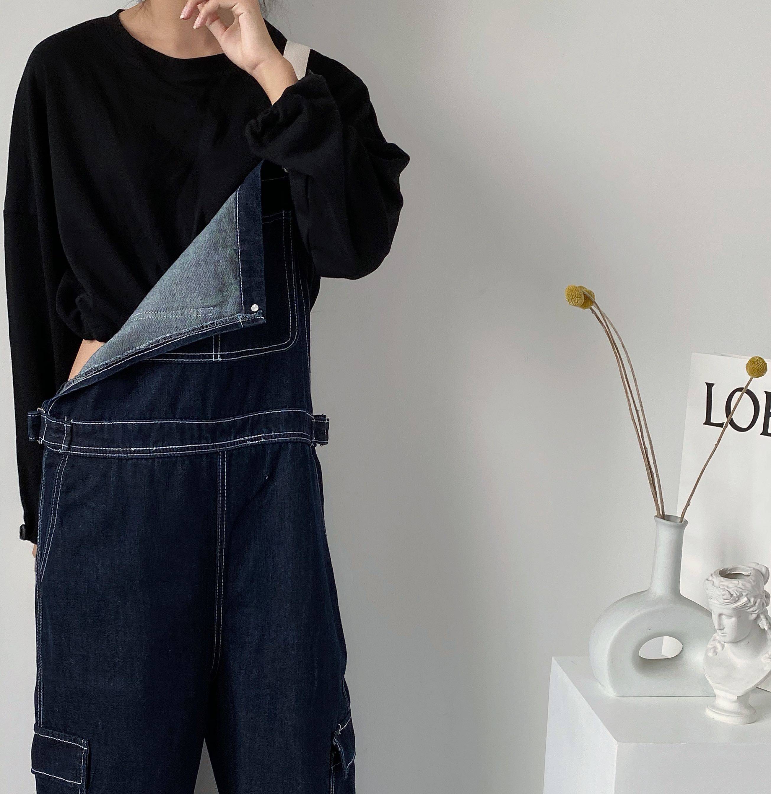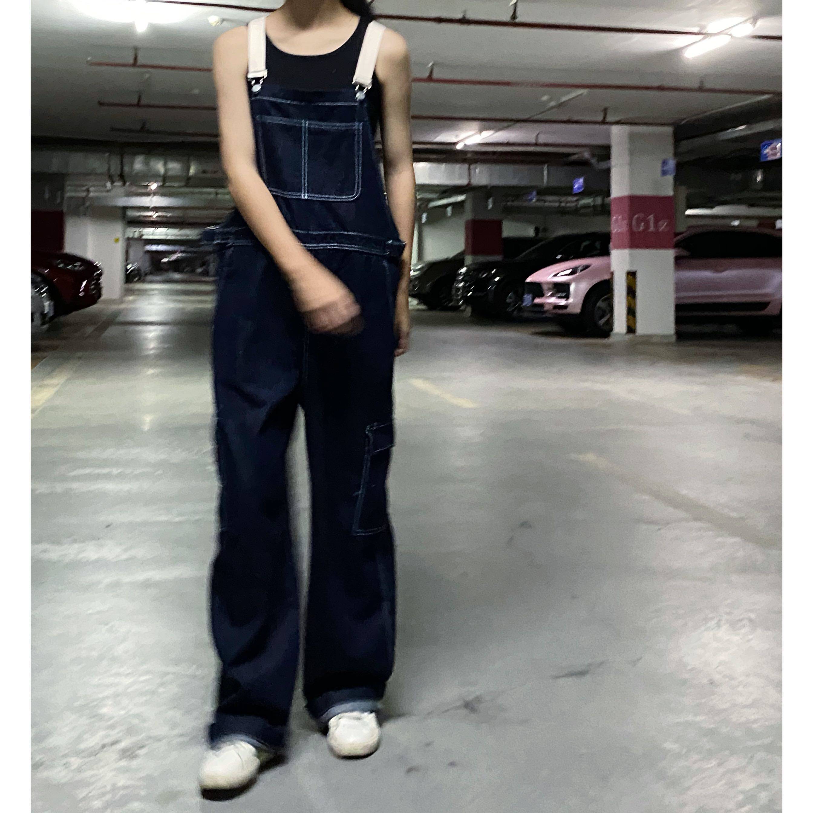 Ретро джинсовый комбинезон, штаны, оверсайз, в корейском стиле, свободный прямой крой, популярно в интернете
