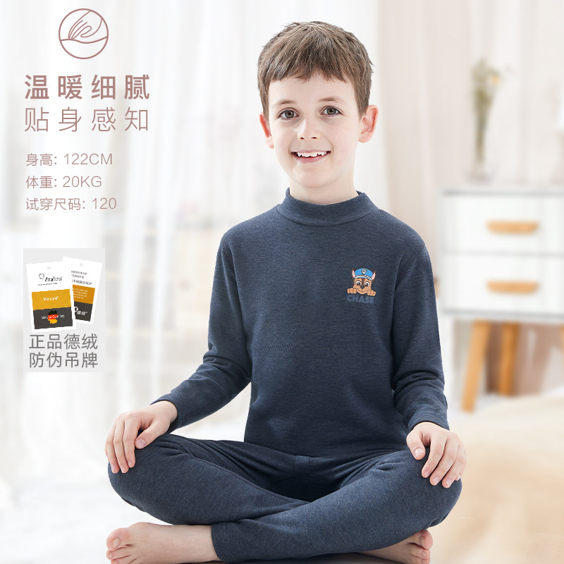 Удерживающее тепло нижнее белье для мальчиков, детский комплект, бархатное осеннее термобелье, штаны, пижама