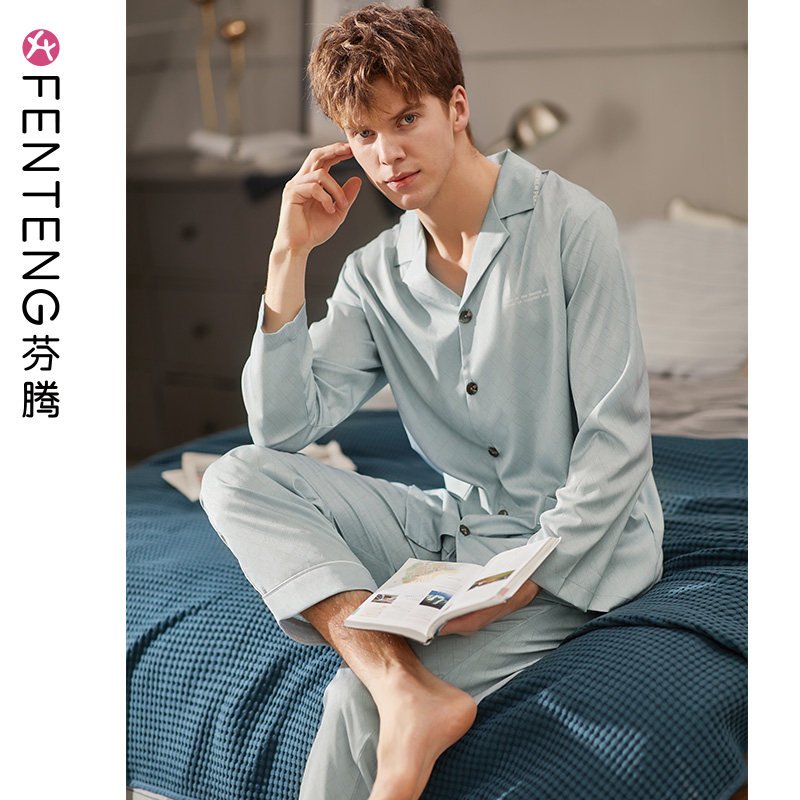 芬腾 Лонгслив, мужская пижама, шелковый кардиган, комплект, в корейском стиле, большой размер