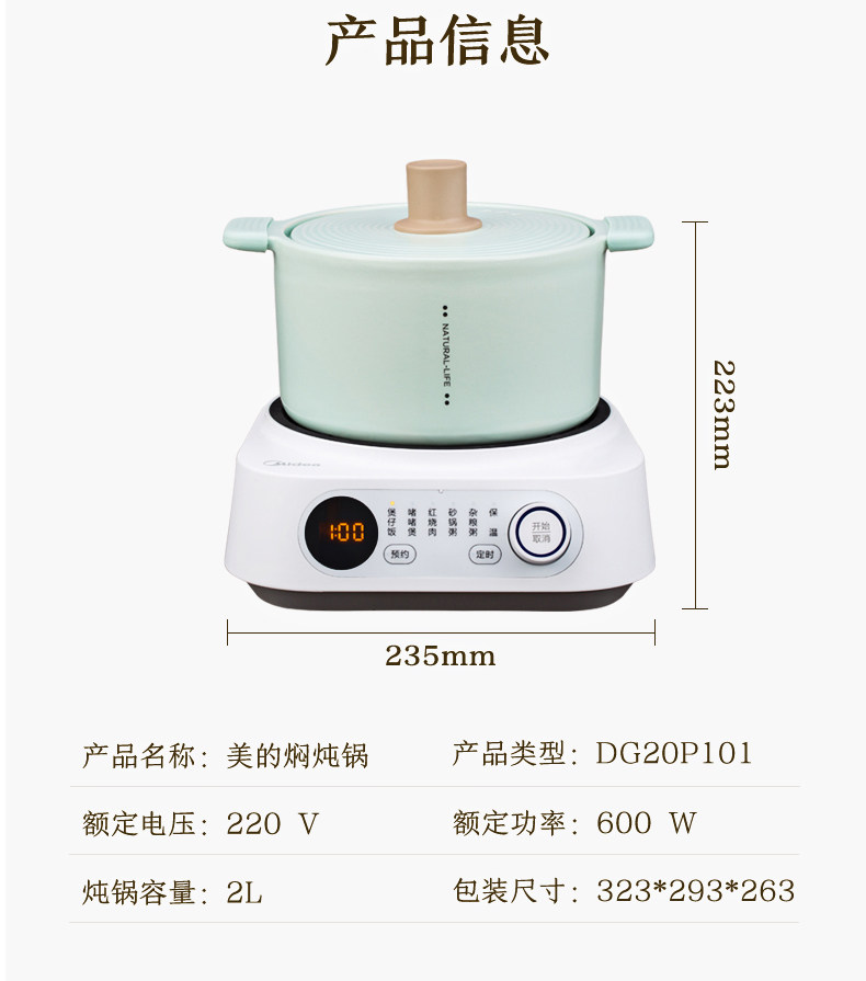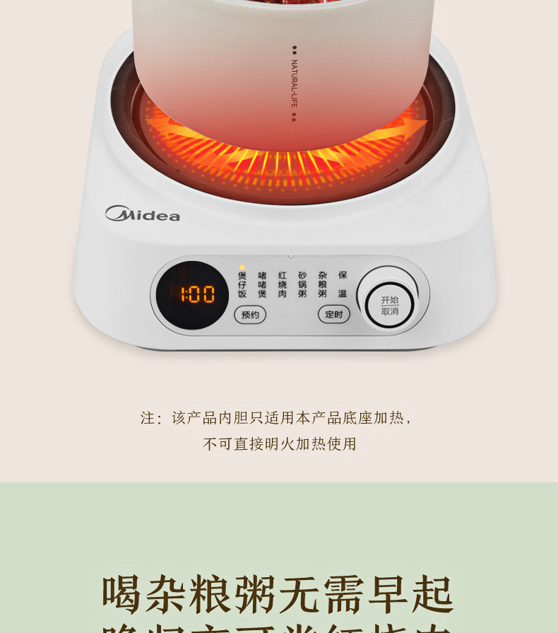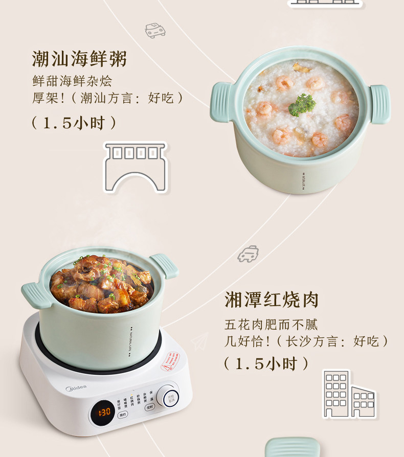 Midea Electric Stew Pot Home Ceramic Pot Pot Pot Baby Дополнительная пища повседневная заглушка в многофункциональном тушеное каша кара артефакт кара