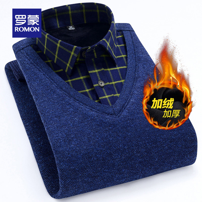 Трикотажный комплект, мужской свитер, утепленная рубашка, 2020