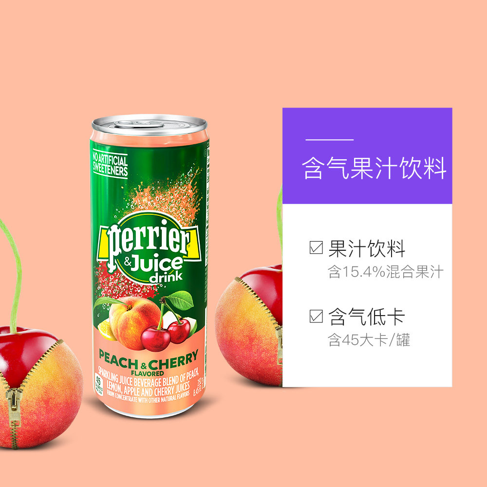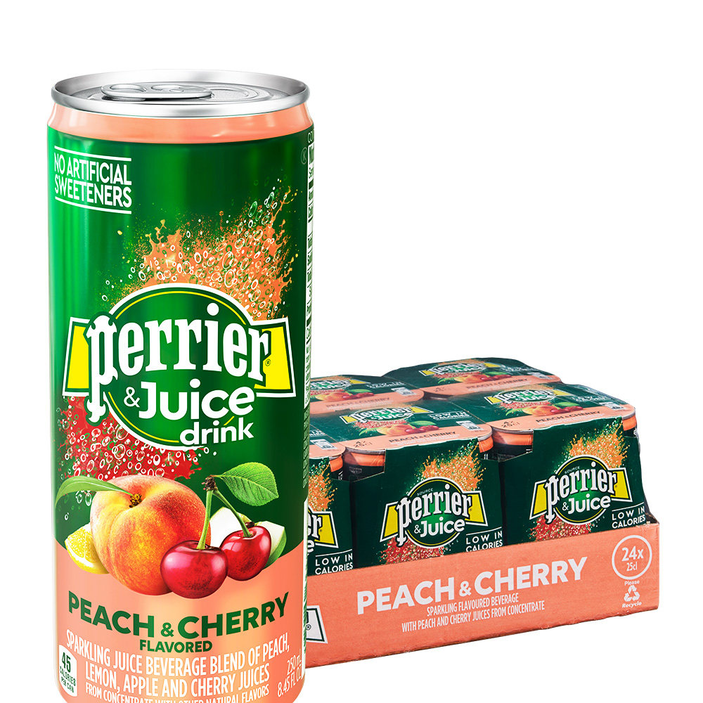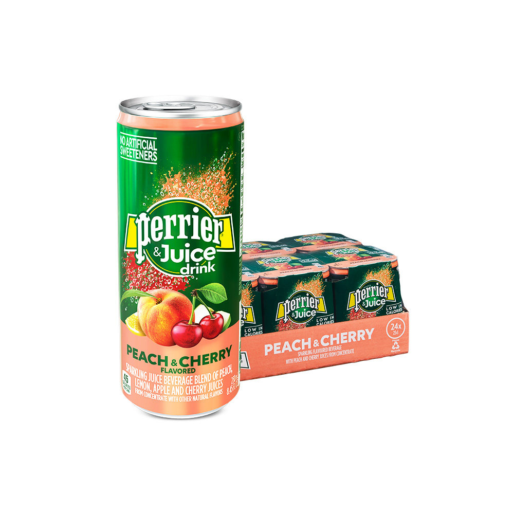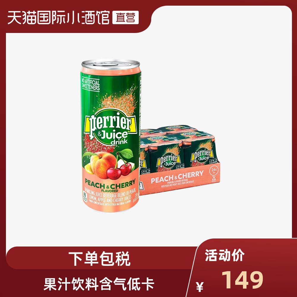 Франция импортировала Perrier Paris Water Peach & amp; вишня со вкусом низко -сугарные напитки