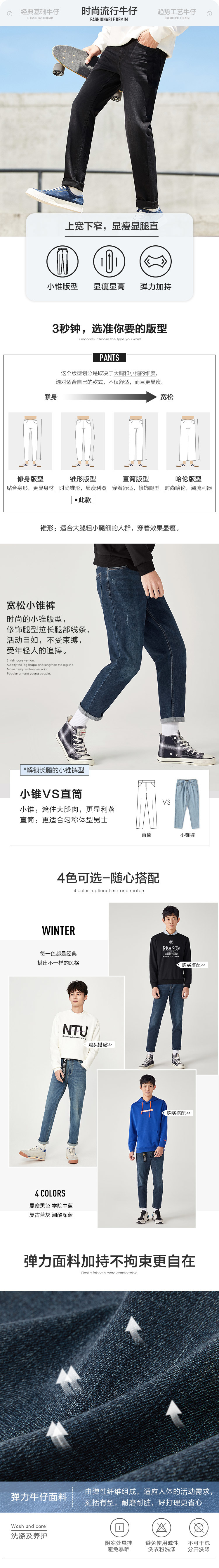 Semir, мужские прямые свободные джинсы, осенние черные эластичные штаны, 2020