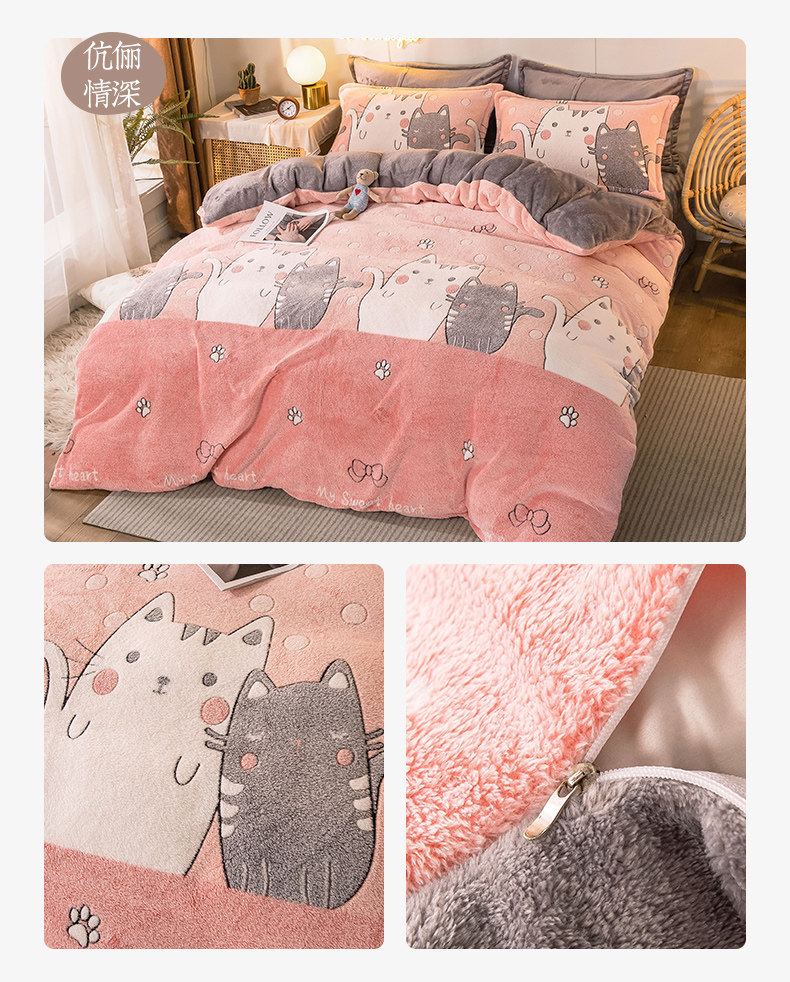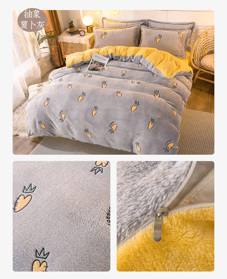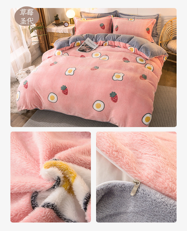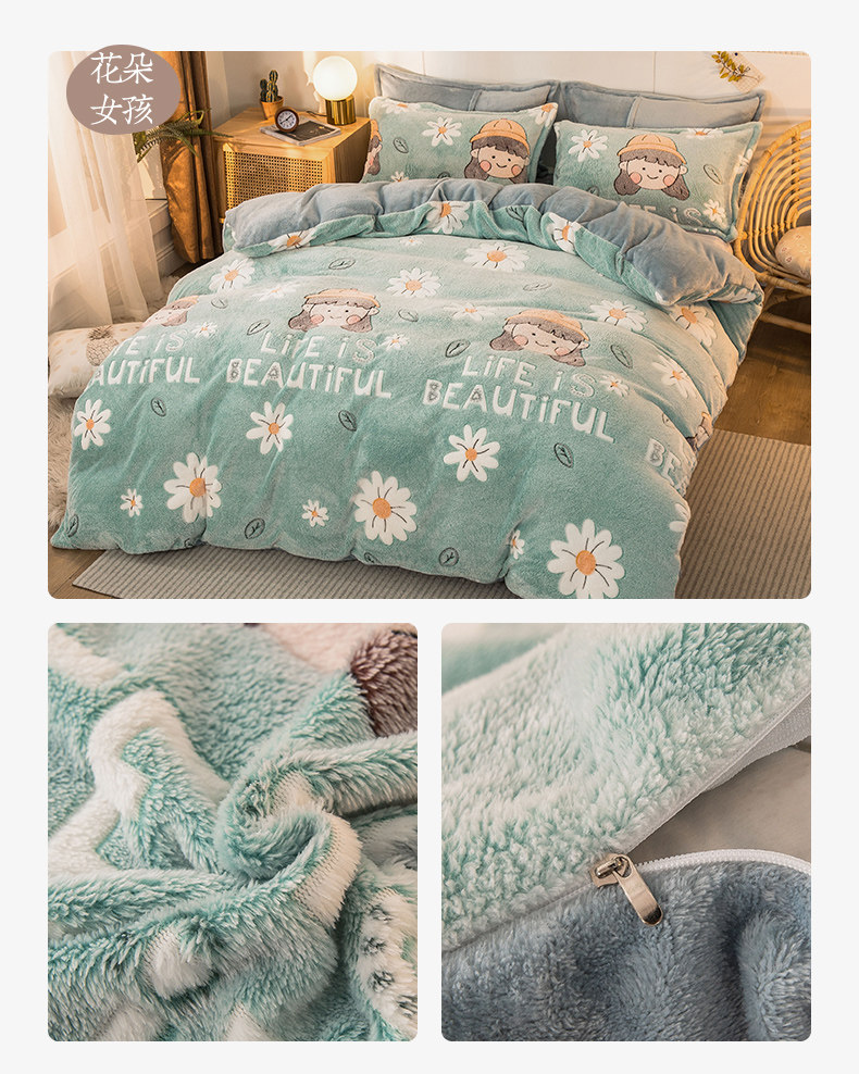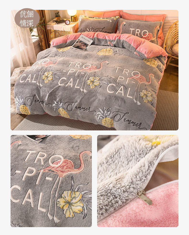 北极绒 Коралловый демисезонный комплект, фланелевая простыня, двусторонний флисовый пододеяльник, 4 предмета, со снежинками