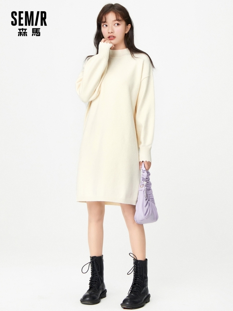 Semir, зимнее трикотажное платье, длинный фонарь, шерстяное платье, юбка, 2020, средней длины, высокий воротник