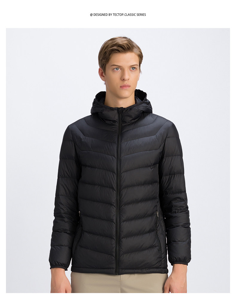 Дорожный демисезонный ветрозащитный пуховик, модная легкая и тонкая удерживающая тепло куртка с капюшоном с пухом