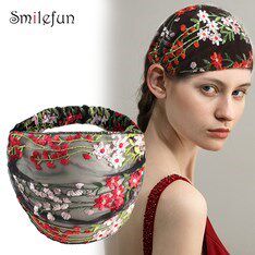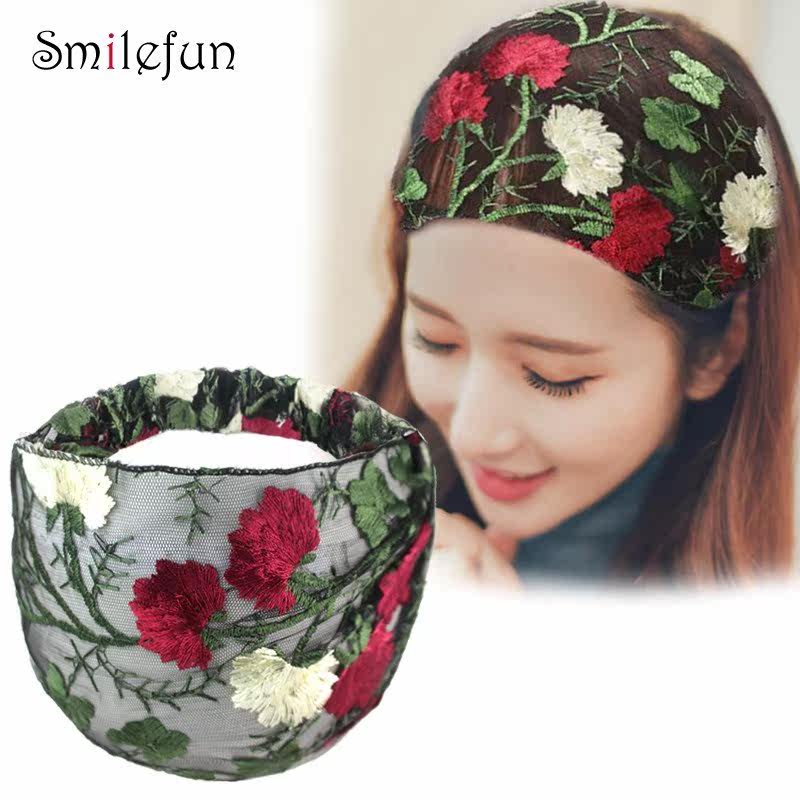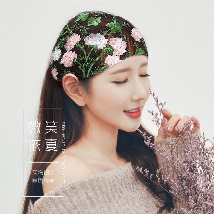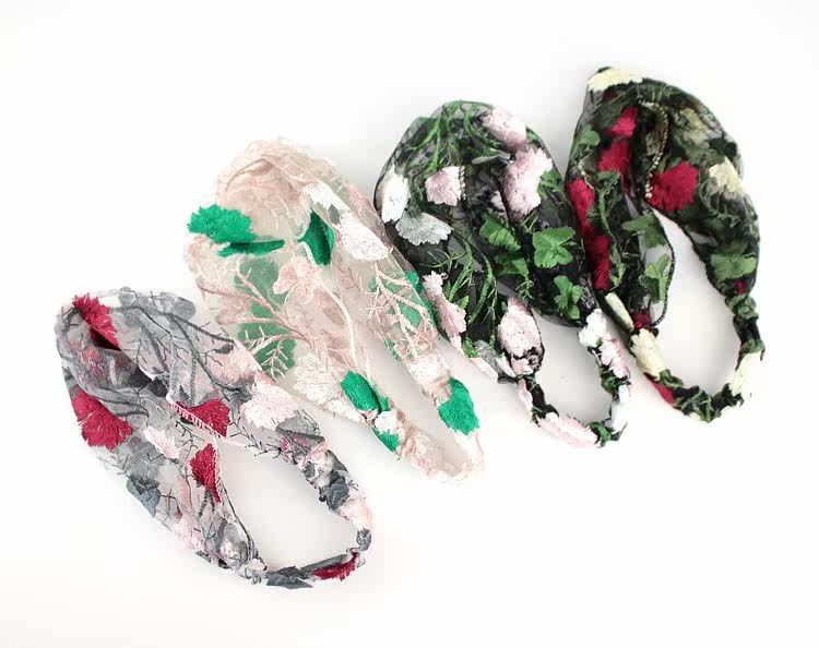 Летний аксессуар для волос, повязка на голову, ободок, с вышивкой, в цветочек