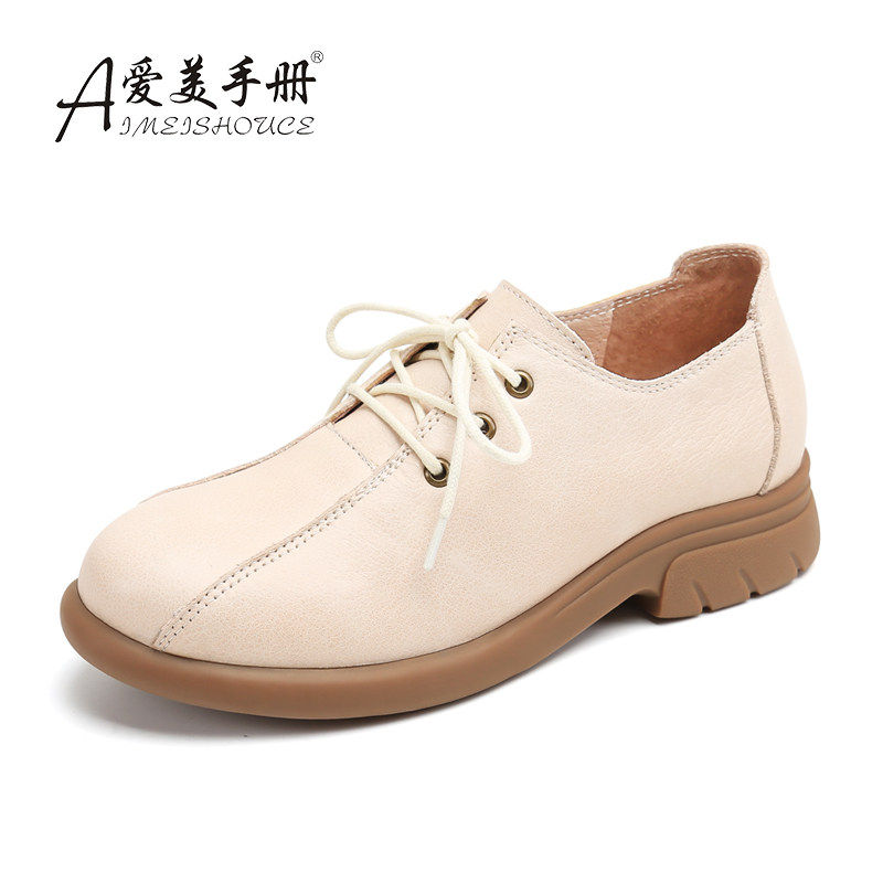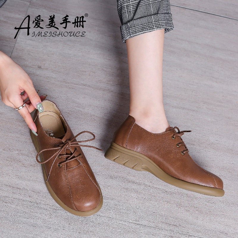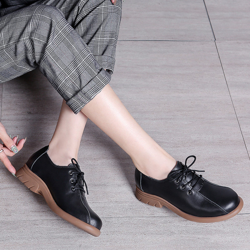 Весенне-осенняя женская обувь большого размера с толстой стопой, туфли с широким горлышком, женские туфли на плоской подошве со шнуровкой, маленькие кожаные туфли в стиле ретро, повседневная обувь в британском стиле.