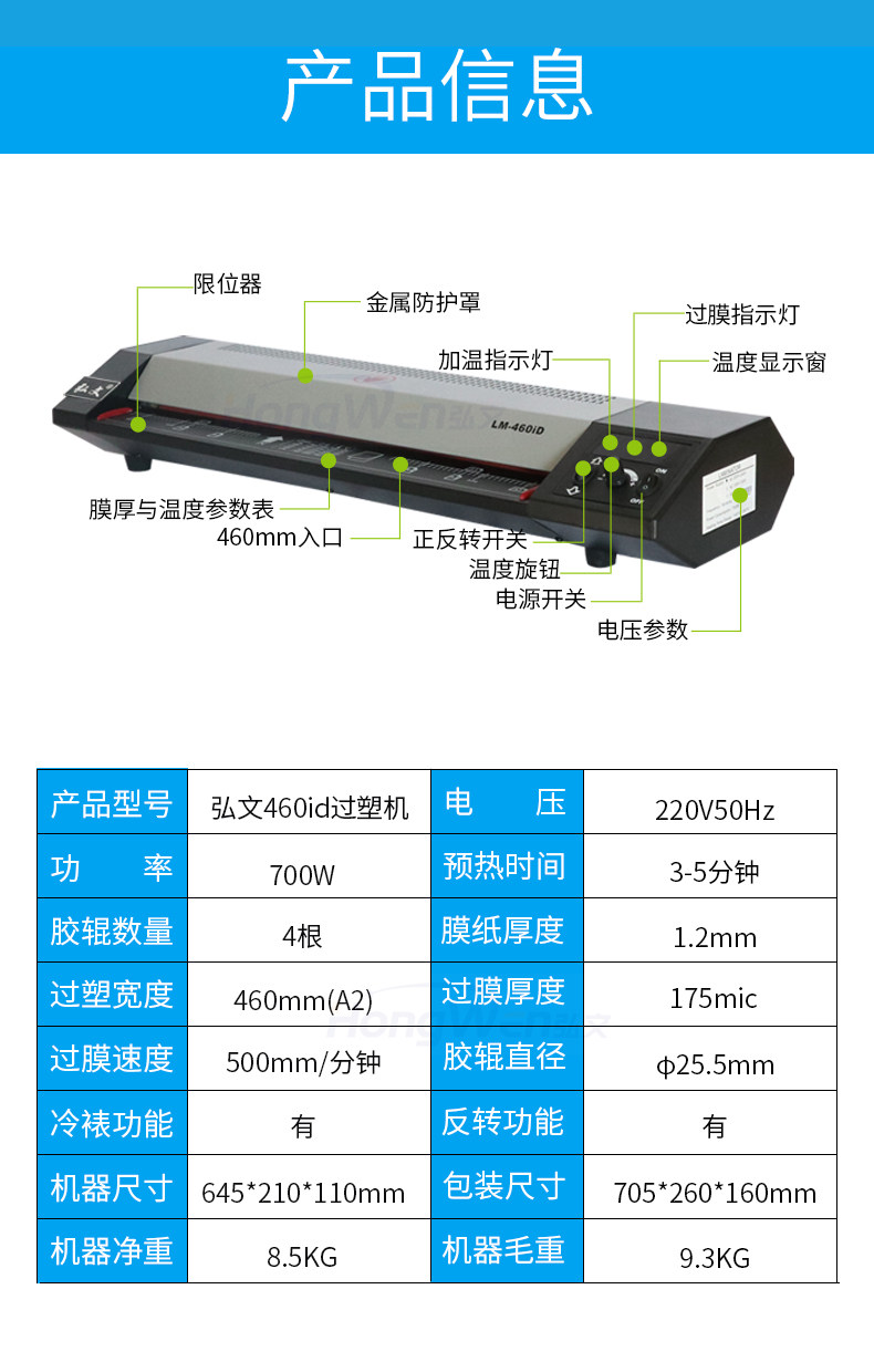弘文 460ID Пластиковое уплотнение машины A2/A3 Фото фото пластиковой машины Коммерческий меню с перекрытием A4 перекрывающими