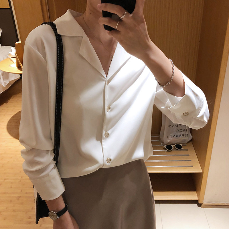 Лимон Дом простая высокая улица Яоси в стиле соленый корейский стиль ниша уксусная кислота атласная рубашка тяжелая индустрия женская дизайн женский дизайн женщины