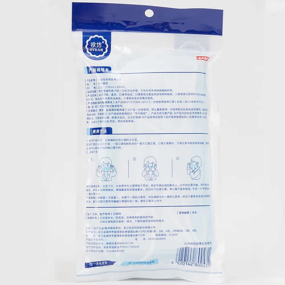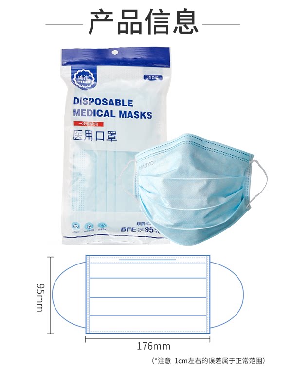 Маски медицинские одноразовые Oujie 10 шт.