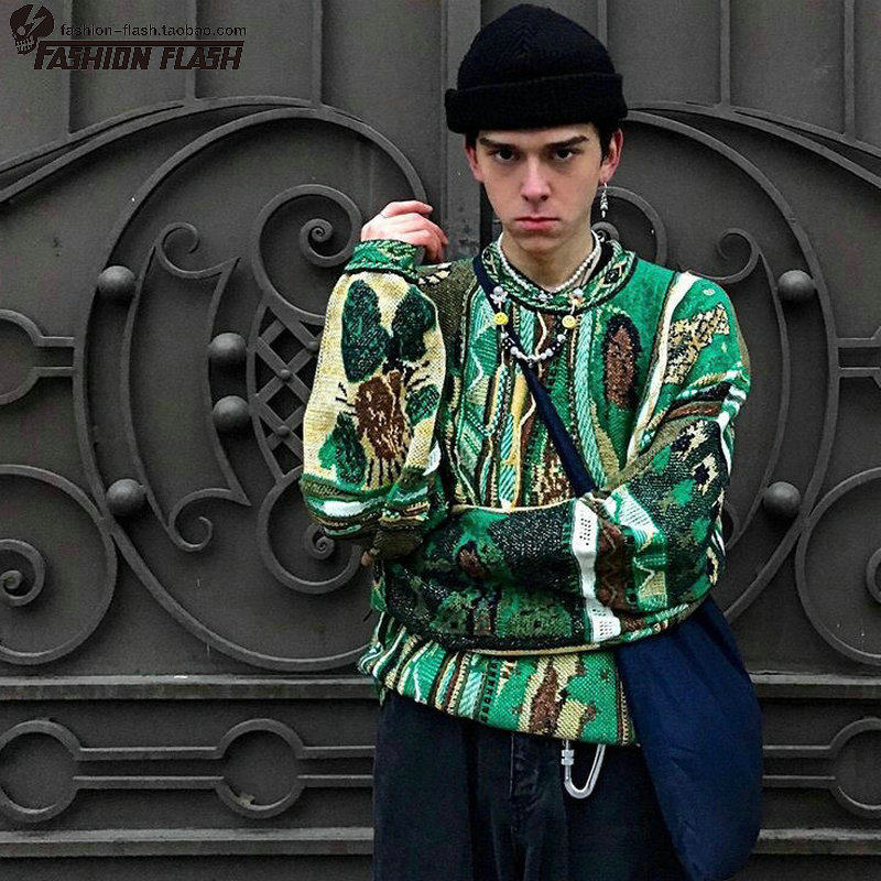 Капитал 24SS Ретро контраст -Круглая круглая овраза KEDDLES Свитер Цвет Lion Man, как мужчины и женщины