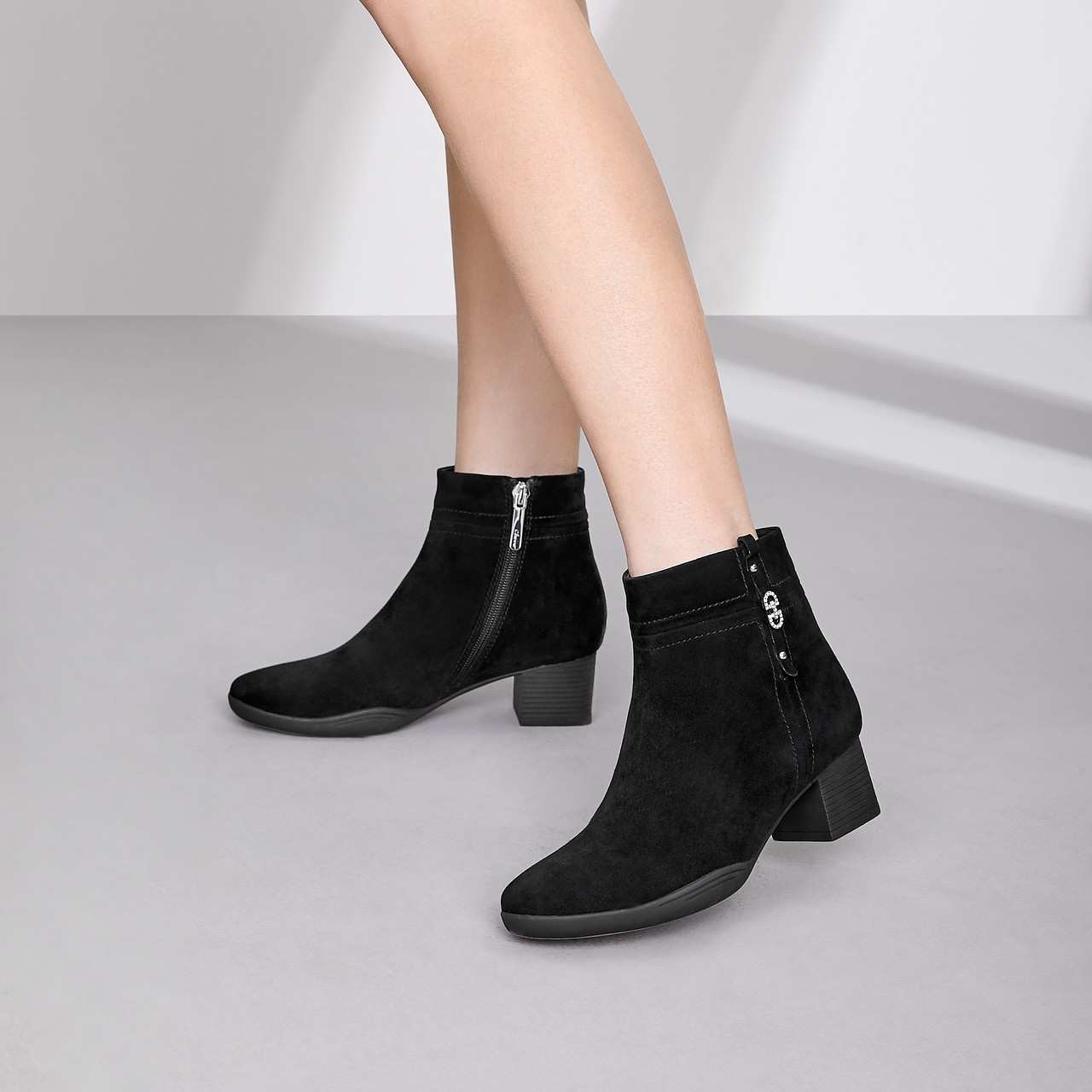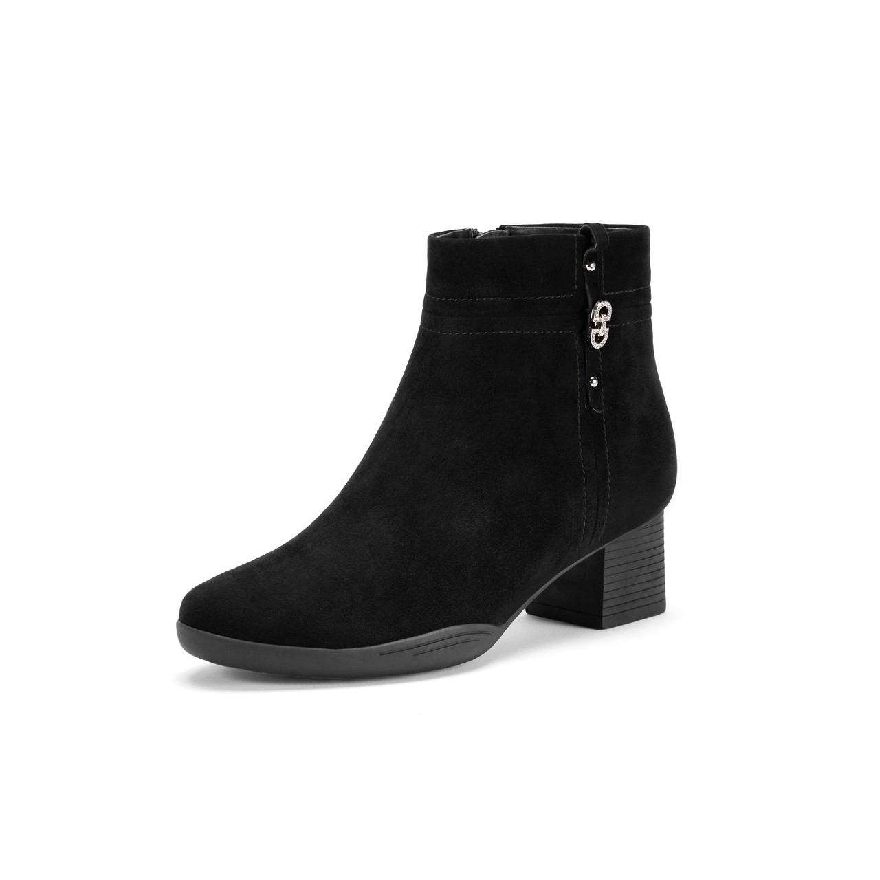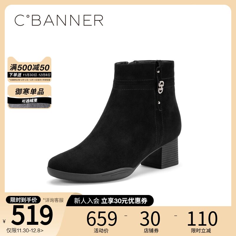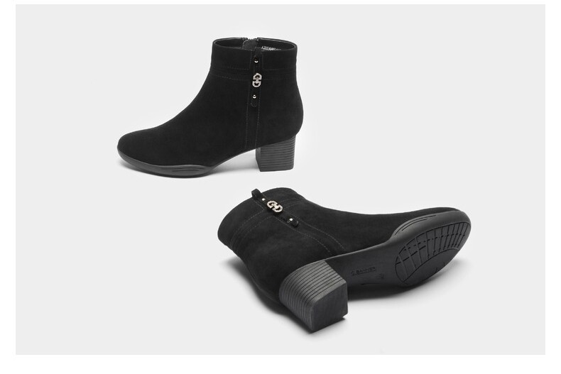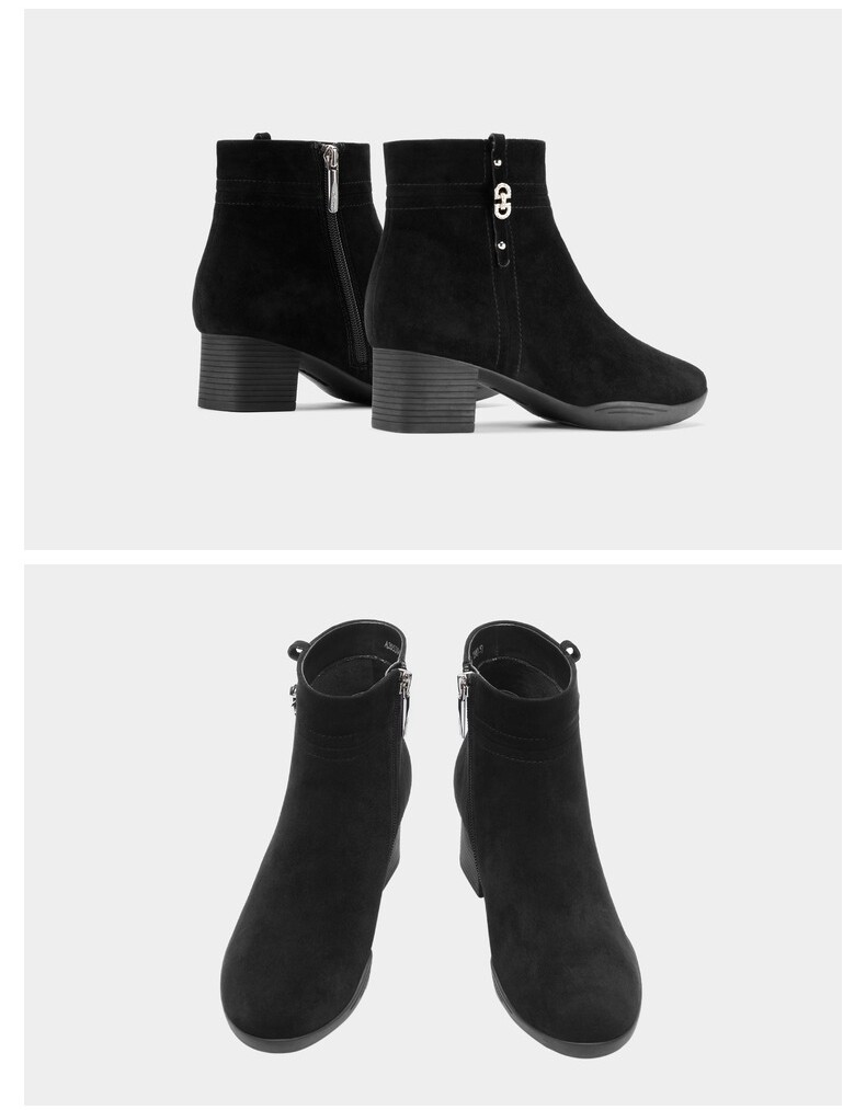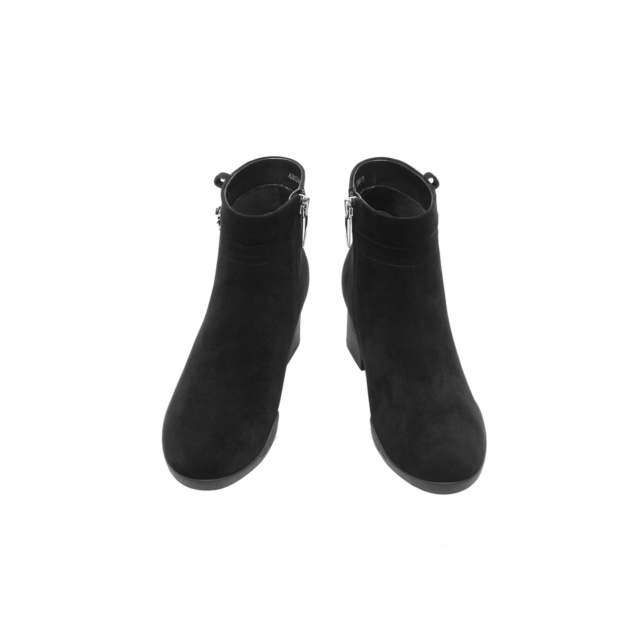 Демисезонные комфортные черные замшевые флисовые короткие сапоги