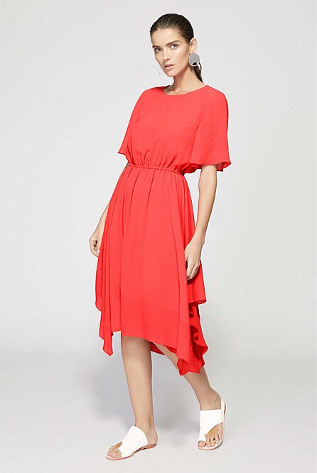 8018 Хорошие продукты приходят, большие манжеты, короткие рукава, нерегулярные качели, течет и подвесное плиссированное платье