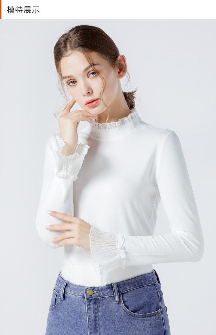 艾米恋 Кружевной осенний черный базовый приятный телу зимний лонгслив, высокий воротник, в обтяжку, облегающий крой